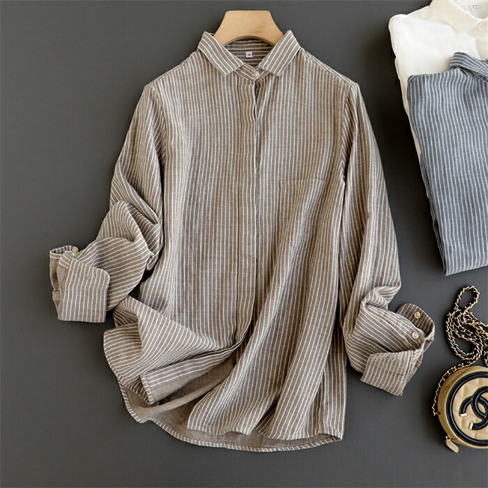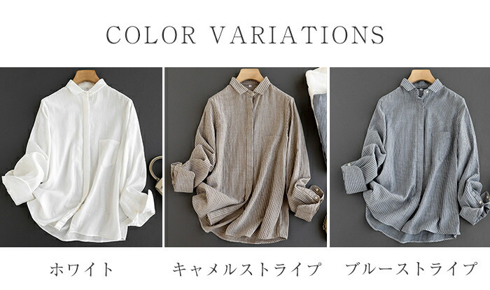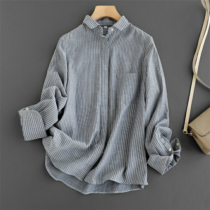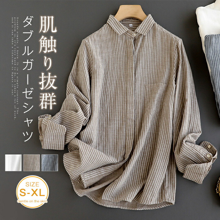 ガーゼシャツ シャツ トップス ブラウ レディースファッション 続々登場 ホワイト キャメルストライプ ブルーストライプ S M L XL
