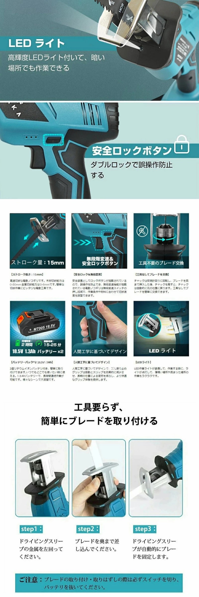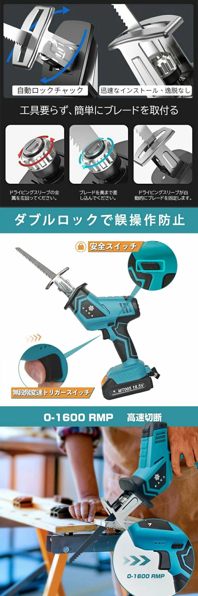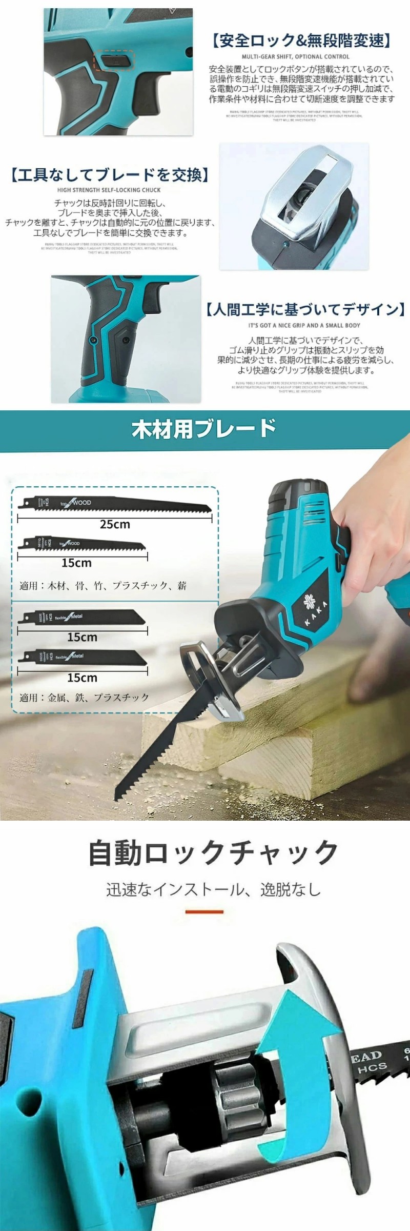 【工具なしでブレード交換可能】 ブレードの取り付け・取り外しが簡単で、ロックを回してスリープするだけで素早く交換できます。 ソフトハンドルは人間工学に基づいたデザインを採用しており、長時間滑りにくく、快適に使用できます。 適切な鋸刃を使用すると、金属、木材、タイルなどの材料を切断でき、家庭やDIYアプリケーションに非常に適しています
