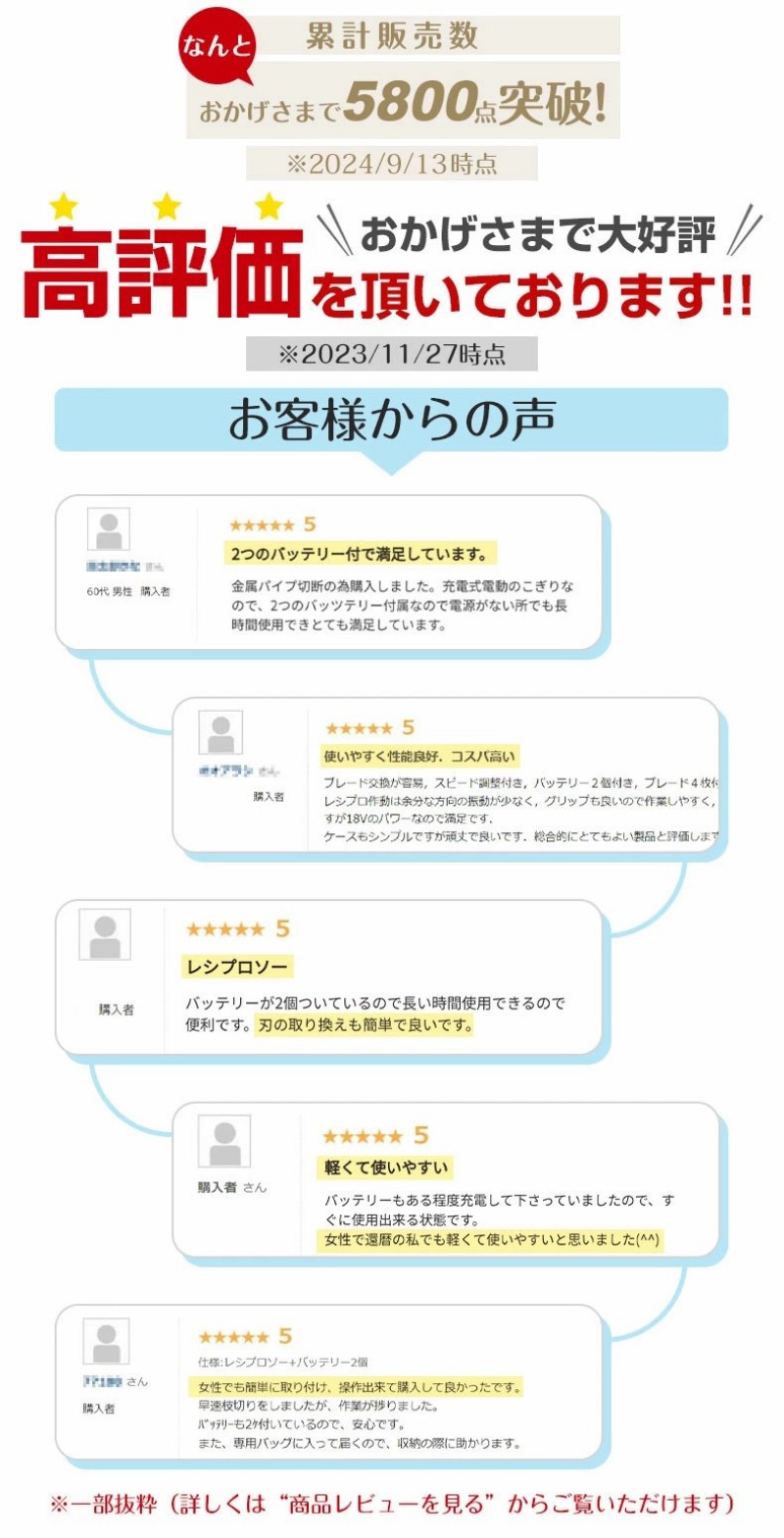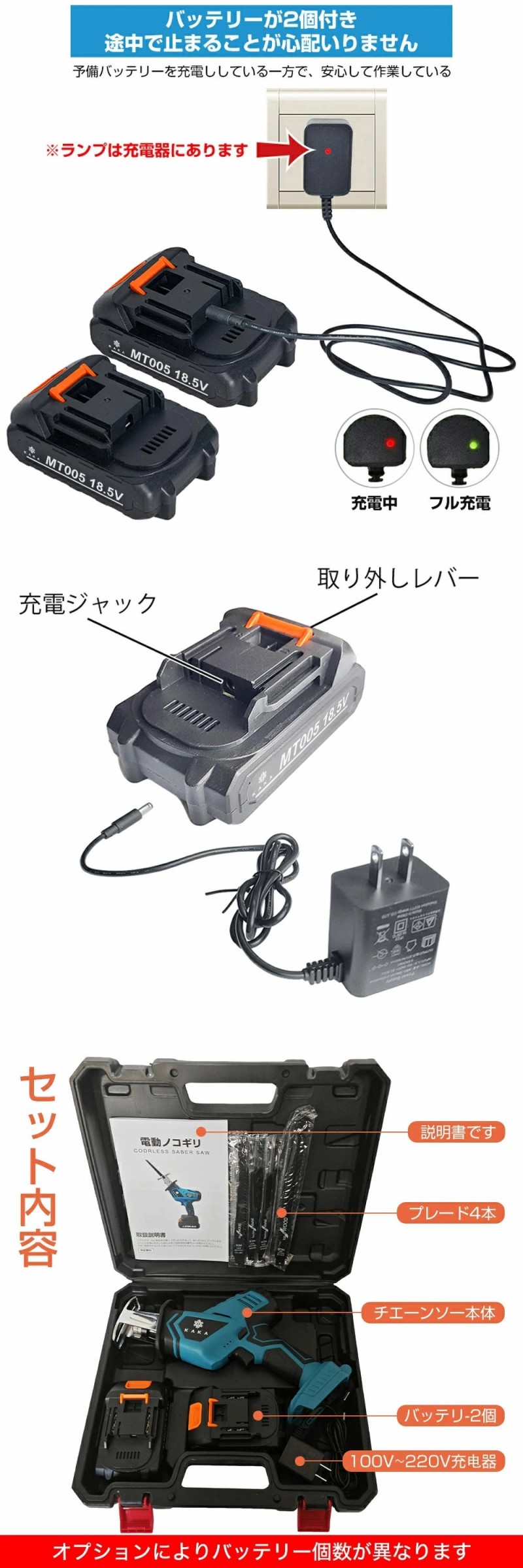 電動ノコギリ レシプロソー 充電式 2 本体+バッテリーx1+ブレードx4 本体+バッテリーx2+ブレードx4 本体のみ+ブレードx4
