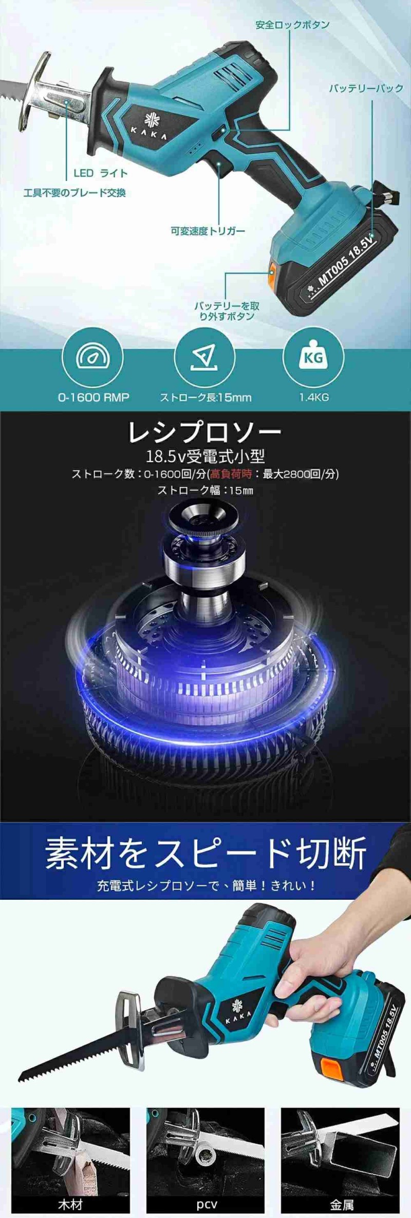電動ノコギリ レシプロソー 充電式 2個バッテリー 電動のこぎり チェーンソー 小型 家庭用 電動レシプロソー コードレス バッテリー併用 充電式のこぎり 強力 片手 軽 バッテリー付き