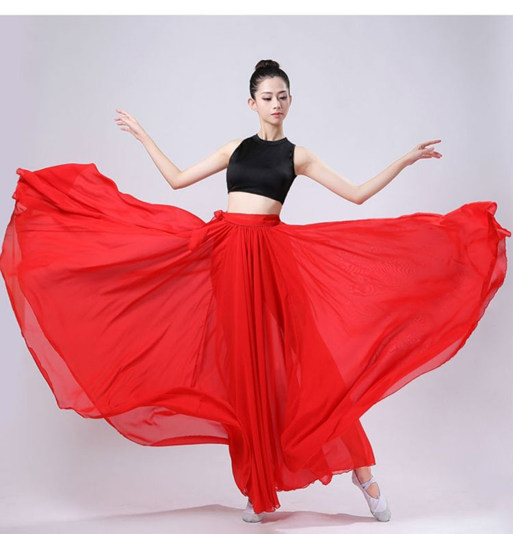 ダンス衣装 スカート ロング 大きい裾 体操 ダンス 社交ダンス ウェア 通販 MS WT RD BK
