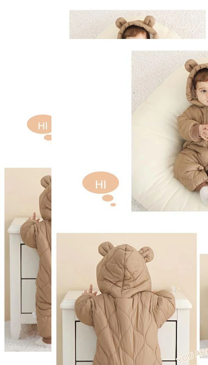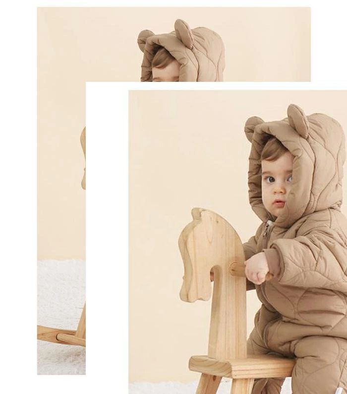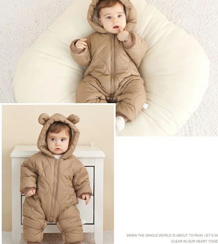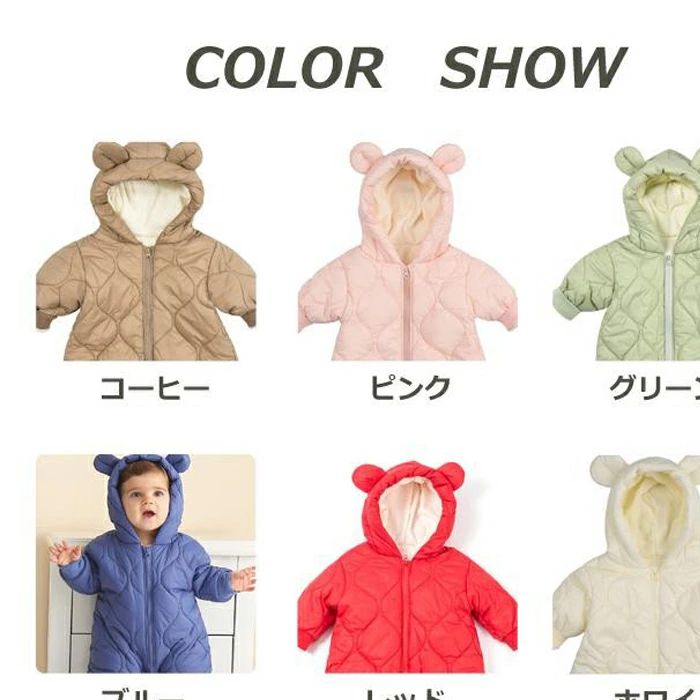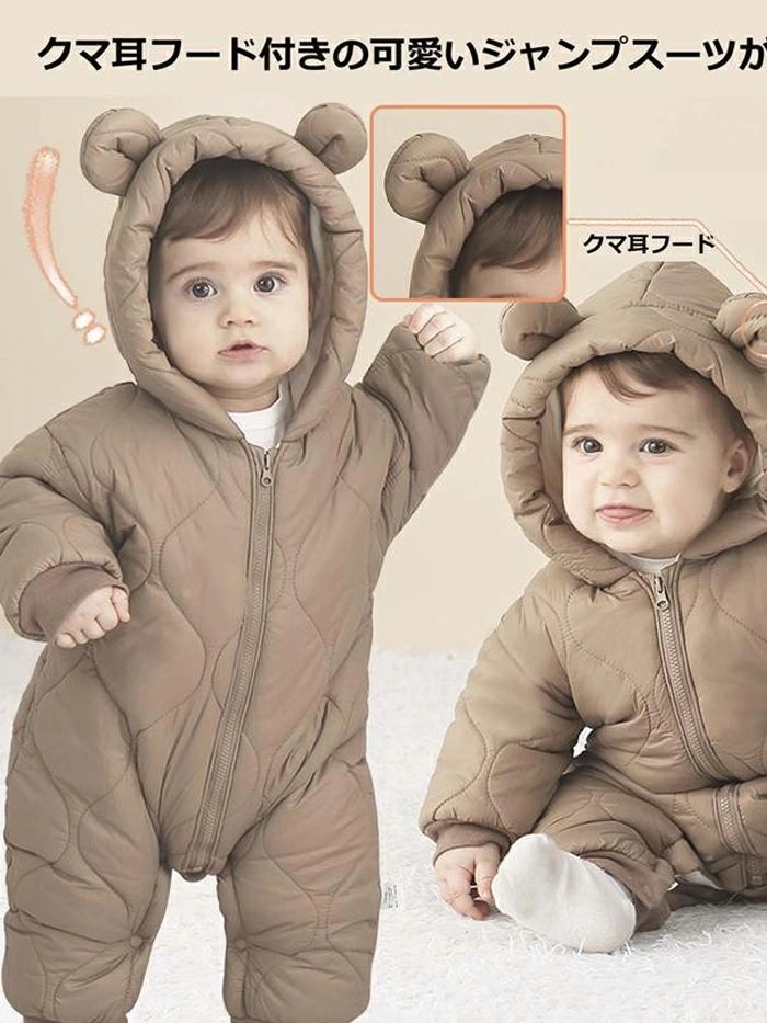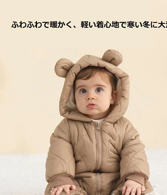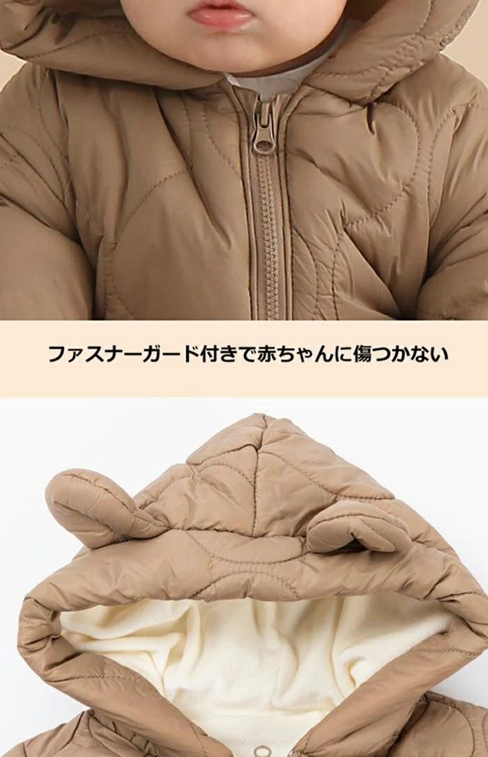 ジャンプスーツ 防寒着 防風 ベビー服 80 着ぐるみ 冬 裏起毛 雪遊び 軽量 冬服 アウター あったか 長袖 66 クマ耳 ベビーウェア 防寒
