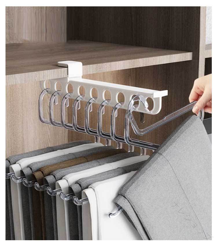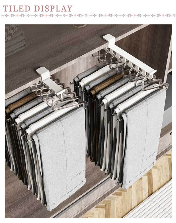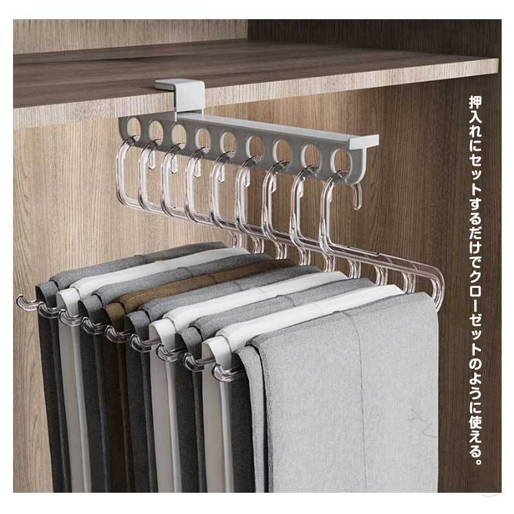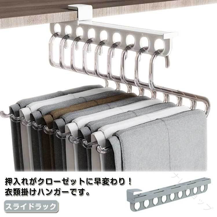 クローゼット ハンガー レール スライド 押入れ 収納 引き出し式 ラック 伸縮式 省スペース 衣類 ズボン グレー 整理 棚 スラックス