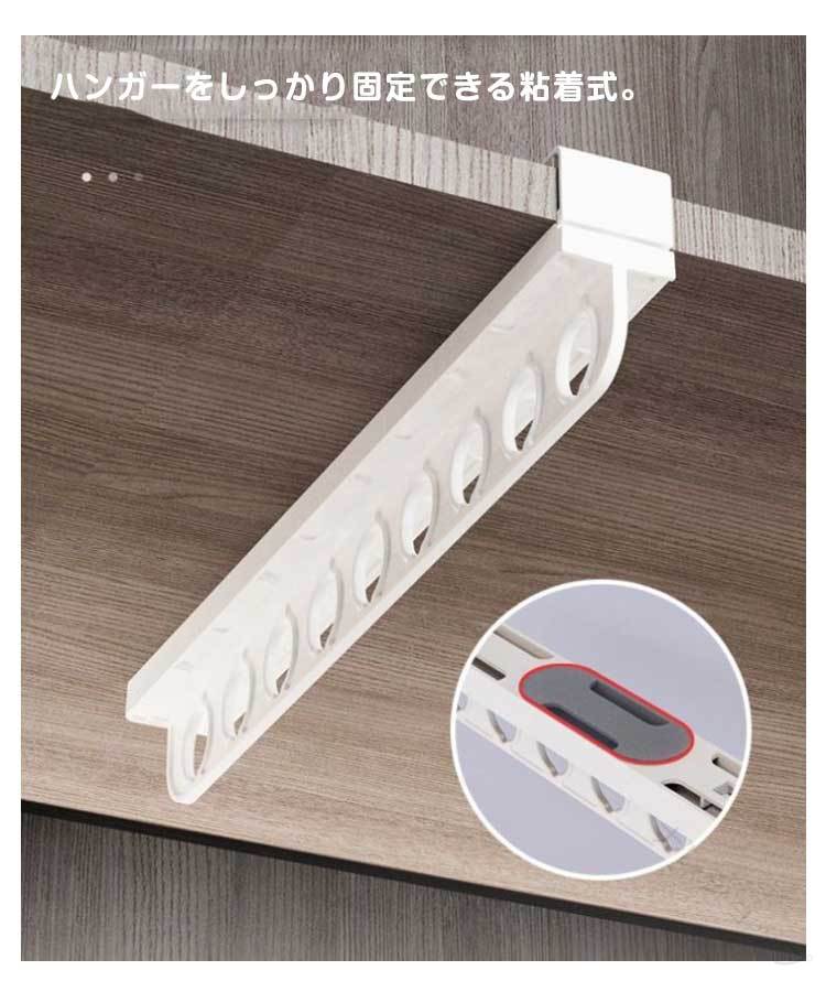 押入れがクローゼットに早変わり!衣類掛けハンガーです。ハンガー部が手前にスライドする衣類用ハンガー。押入れにセットするだけでクローゼットのように使える。ハンガーをしっかり固定できる粘着式。手前にスライドするので、奥に掛けた衣類も手に取りやすい。
