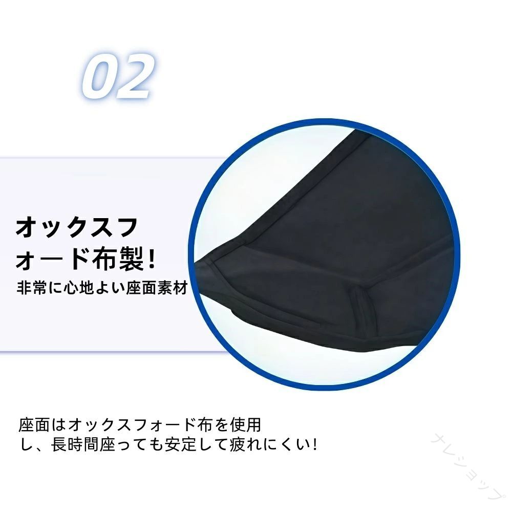 アウトドアチェアには専用の収納バッグが付属しており、折りたたみ傘と同じくらいの軽量でコンパクトなサイズで、シートに収納ボックスが一体化されているため、持ち運びが簡単です。 とても座り心地の良いチェアです。 ちょっと休憩したい方や、長時間の立ち仕事をしたい方にオススメです! 座面はオックスフォード生地を使用しており、長時間座っていても安定的で疲れません。従来品に比べて優れた座り心地と安定性と両立したチェア,折りたたみ 椅子は凸凹した不安定な岩場や釣り場などに、より安定した便利な使い方ができます。 アウトドアチェアの内部接続構造ですので、ポールを紛失する心配がありません。汚れたら、メタルポールの部分はただ拭くことで、シートは普通の服のように手洗いができます。また専用収納袋がついているので、収納スペースを食わず持ち運びに便利で楽です。荷物の多いファミリーキャンプ様々なアウトドアシーンでも大活躍します。 あつい季節も蒸し暑くなく、抜群の通気性と快適な座り心地を確保できます。座面の裏も防水加工し、雨でもタオルでちょっと拭くだけ座れます。 キャンプチェアはキ