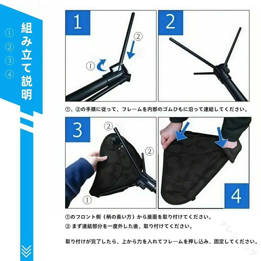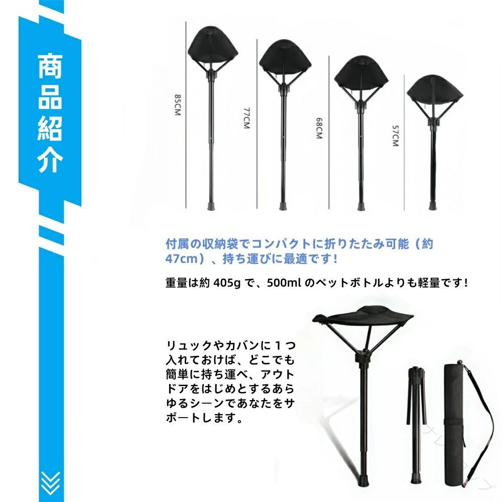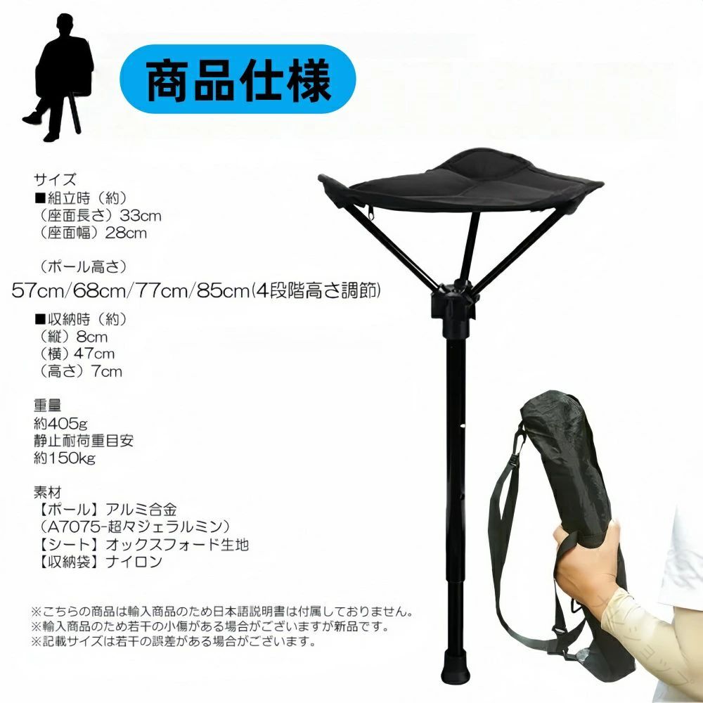 .超軽量 405g の ポータブル 折りたたみ チェア は 一本足 構造で コンパクト に収納可能 です。高さ調整可能 な リクライニング 機能 付きで キャンプ チェア や アウトドア、インドア での スタンディングチェア としても活躍します。耐荷重 150kg で 持ち歩き可能 な 収納袋付き の便利な 椅子 です。。