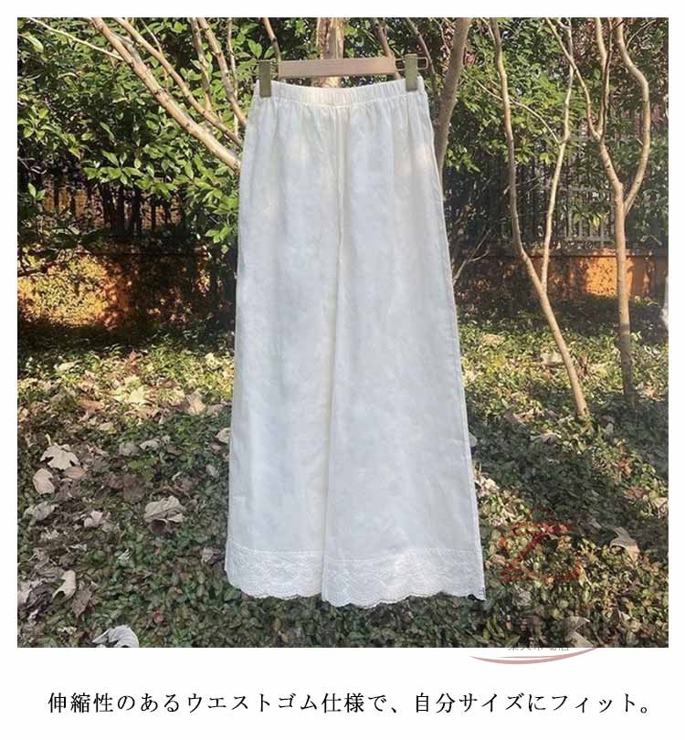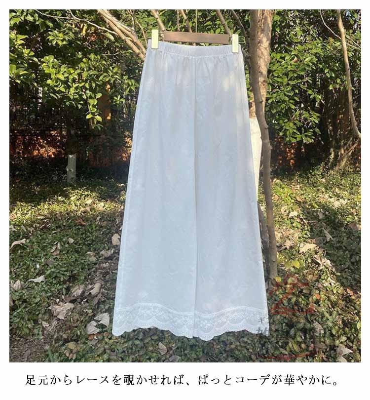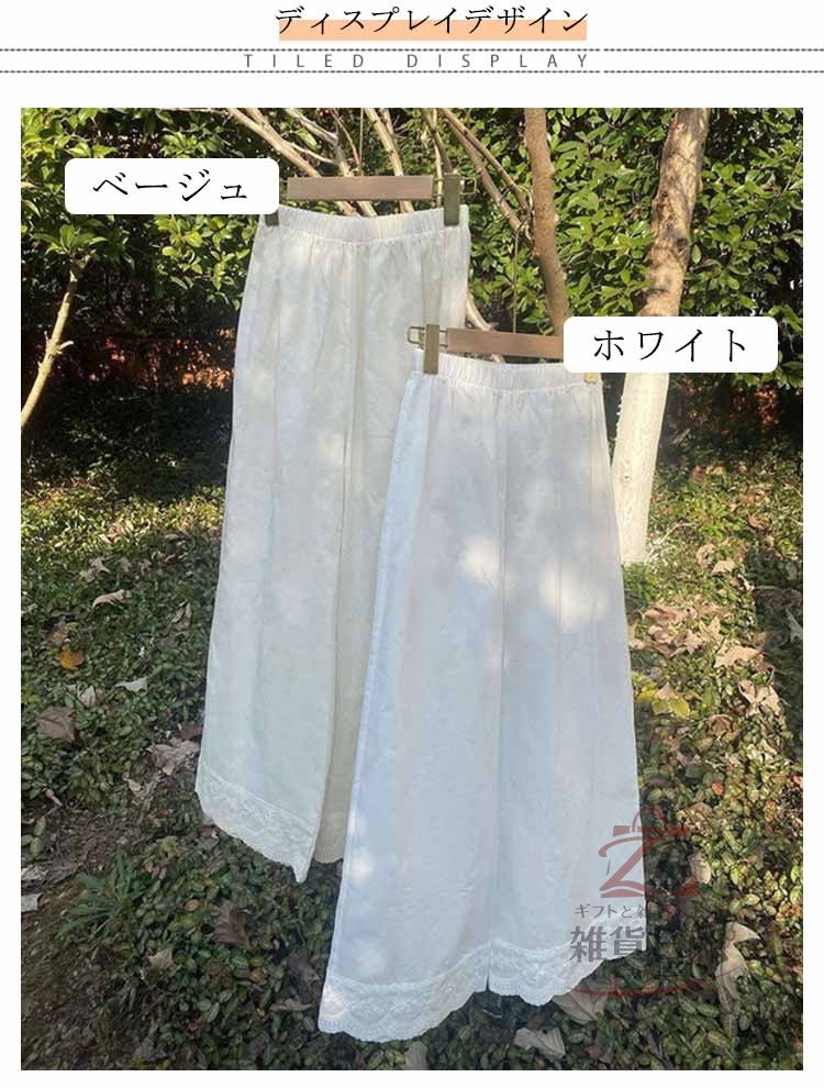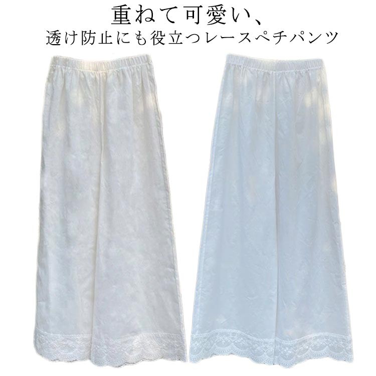 ペチパンツ レディース ロング 裾レー インナー 下着 ナイトウエア 特集 ホワイト ベージュ M L XL 2XL 3XL