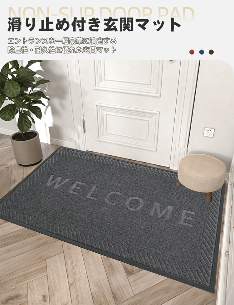 玄関マット 屋外 泥落とし 薄型 業務用 家庭用 大判 滑り止め付き 北欧 洗える おしゃれ 泥除け 砂落とし 無地 ドアマット WELCOME ウェルカムマット 風水 飲食店 オフィス 事務所 店舗