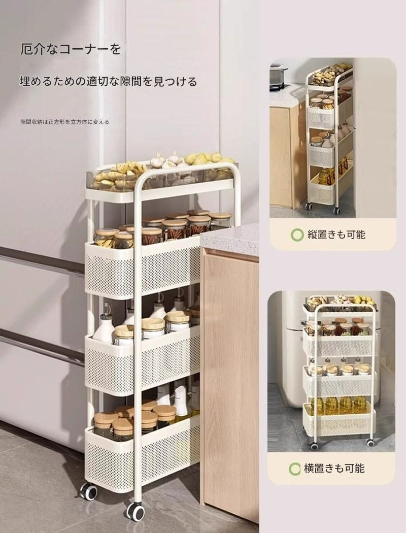 スリムキッチンワゴン 収納家具 キッチ 3層 4層