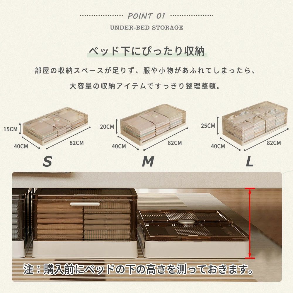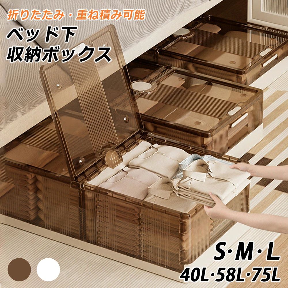 ベッド下 キャスター付き クローゼット ホワイト ちゃいろ Sサイズ Mサイズ Lサイズ