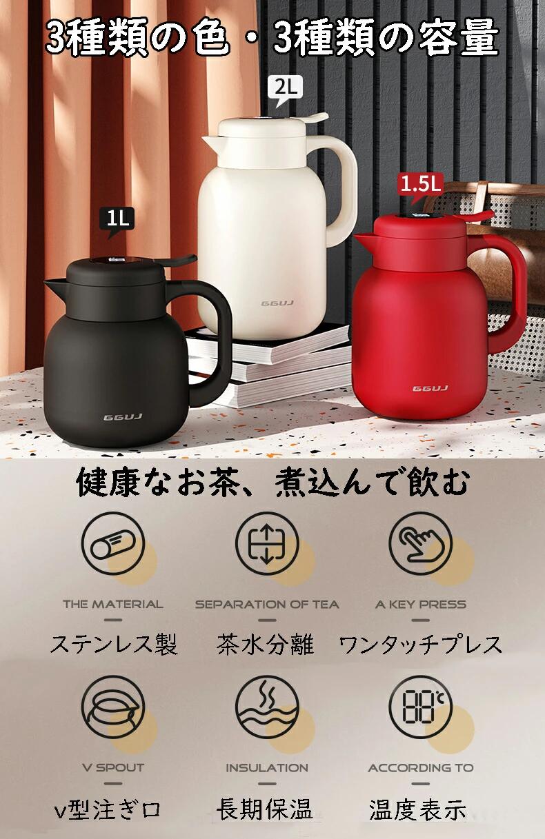 保温ポット 真空断熱 ステンレスポット 保存容器 調味料入れ エアーポット 保温ポット 続々登場 ホワイト ブラック レッド 1000ml 1500ml 2000ml