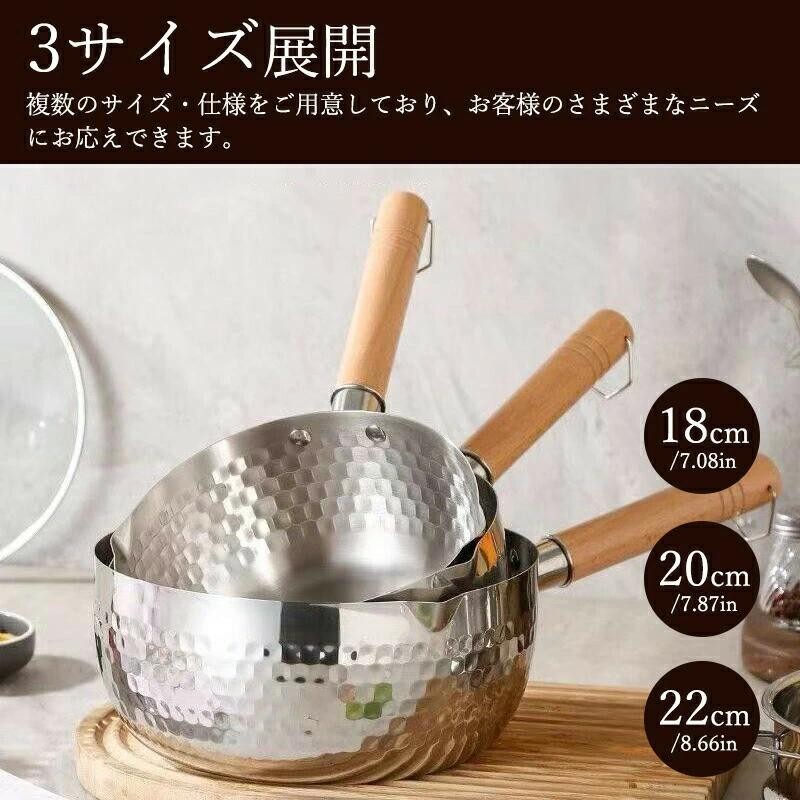 ステンレス製 雪平鍋 片手鍋 両側注ぎ 18cm 20cm 22cm