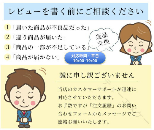 出荷前に全て検品を行っておりますが、万が一商品に不具合があった場合は、お問い合わせフォームまたはメールよりご連絡頂けます様お願い申し上げます。速やかに対応致しますのでご安心ください。