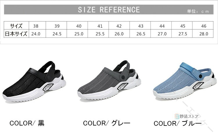 メンズ サボサンダル メッシュシューズ メンズ靴 サンダル スポーツサンダル 人気 39(24.5cm) 40(25.0cm) 41(25.5cm) 42(26.0cm) 43(26.5cm) 44(27.0cm) 45(27.5cm) 46(28.0cm) 黒 グレー ブルー