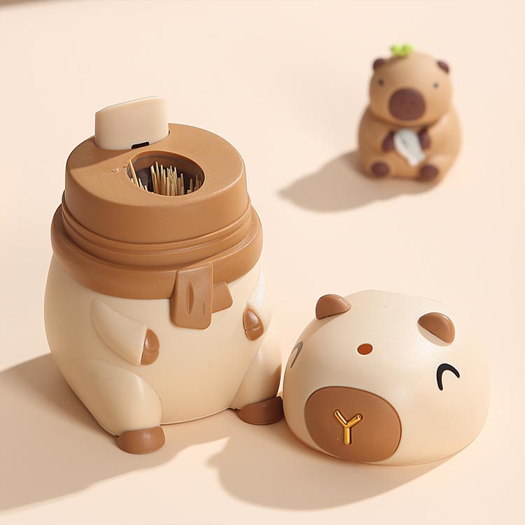 爪楊枝ケース アニマル 家庭用 テーブル飾り 置物 北欧 2点セット カピバラ 爪楊枝入れ ワンプッシュ自動 キャラクター プッシュ式 収納 自動排出式 ポップアップ 防塵 動物 キッチン 食 衛生的