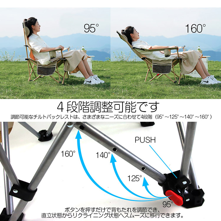 リクライニング折りたたみチェア 足置き スポーツ アウトドア 豊富