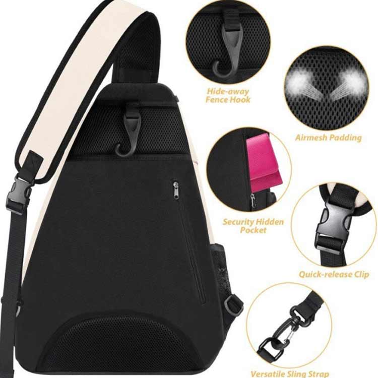 【調節可能なショルダーストラップ】このテニスラケットバッグは下に2つのDリングがあり、ショルダーストラップは左右で簡単に反転できます。 クイックリリースバックル付きのピックルボールバッグの調節可能なパッド入りシングルショルダーストラップは、ほとんどの人に合うように23インチから40インチまで調整できます。