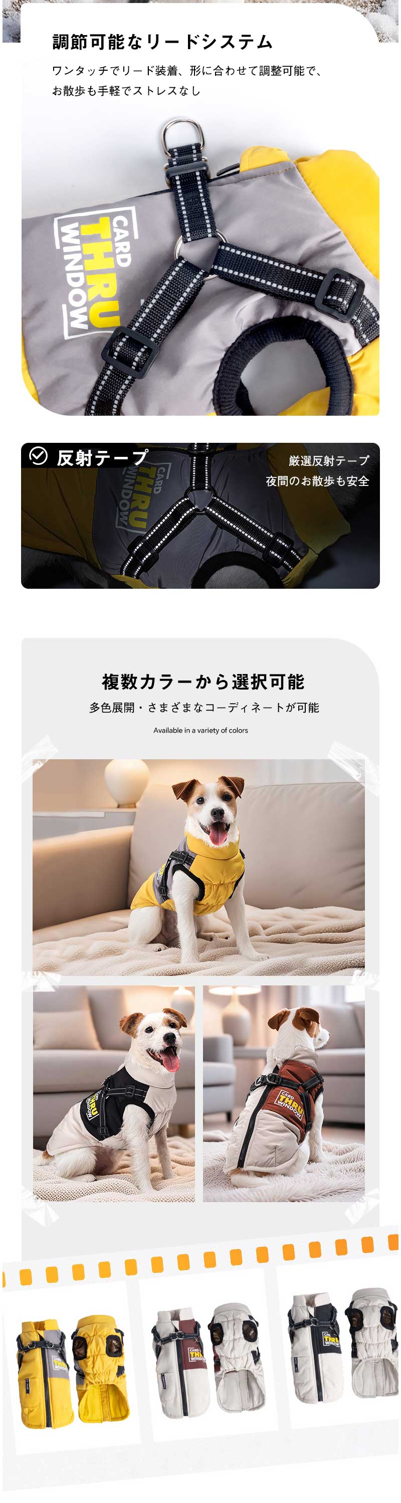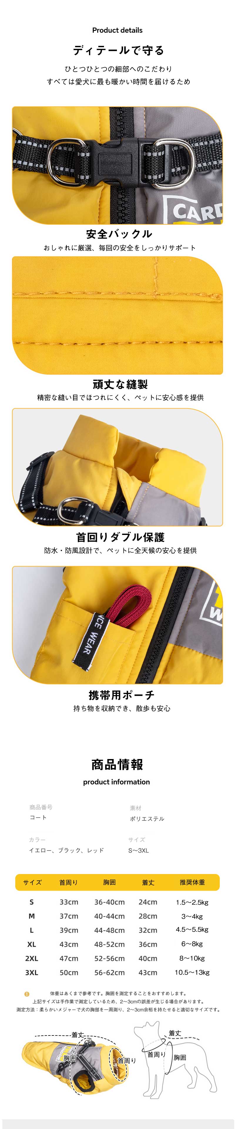 犬 暖かい ベストアウター ハーネス イエロー レッド ブラック S M L XL 2XL 3XL