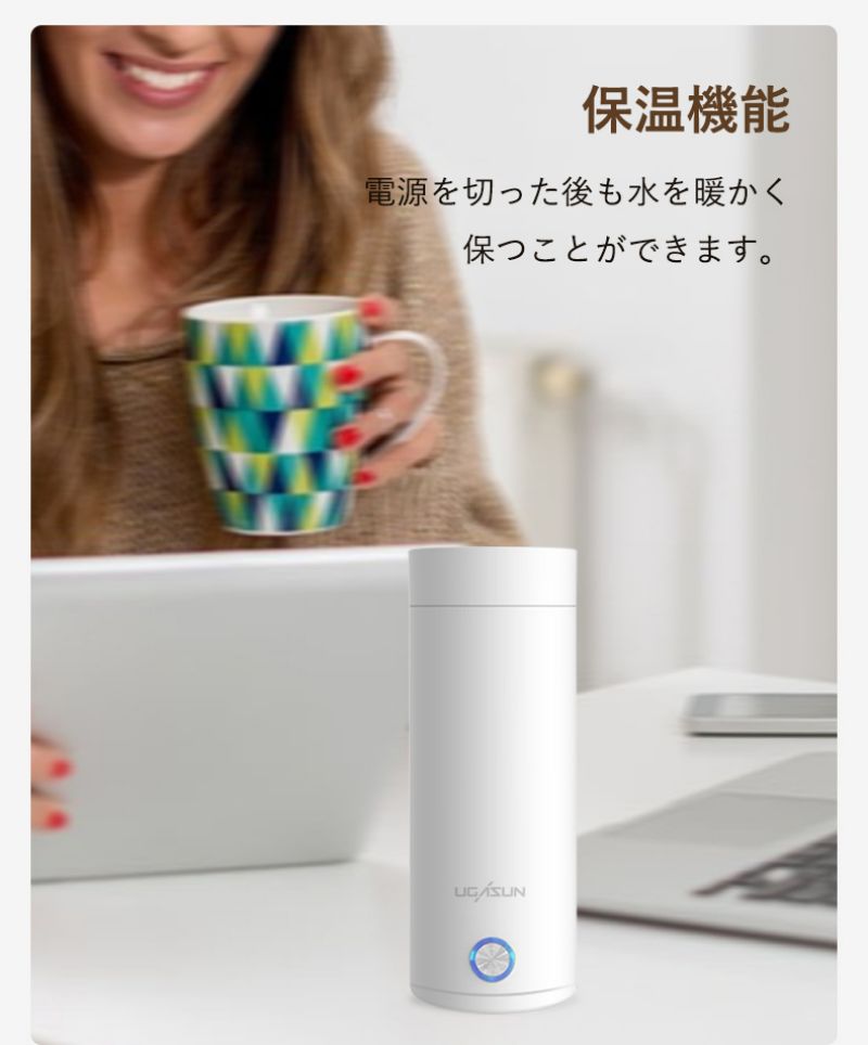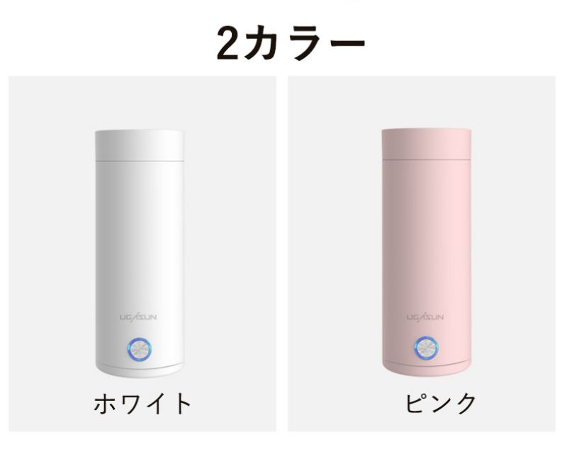 電気ケトル 保温カップ 水筒 400m ピンク ホワイト