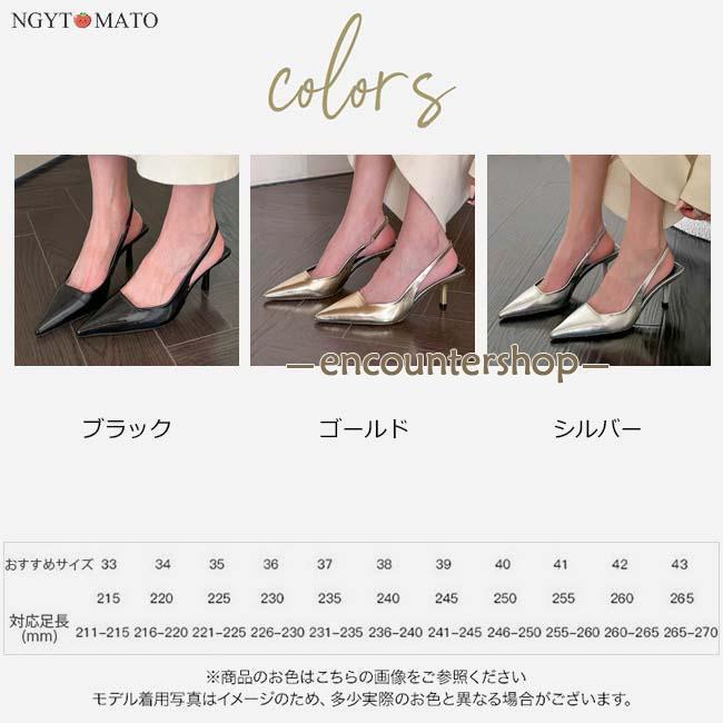 パンプス ポインテッドトゥ バックスト レディースファッション 通販 ブラック シルバー ゴールド FR35(22.5cm) FR36(23cm) FR37(23.5cm) FR38(24cm) FR39(24.5cm) FR40(25cm)