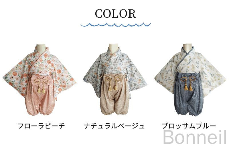 ベビー袴 2ピース セパレート 着物 ベビー ベビー服 ファッション 上下セット セットアップ 早い者勝ち ブロッサムブルー ナチュラルベージュ フローラピーチ 70cm 80cm 90cm