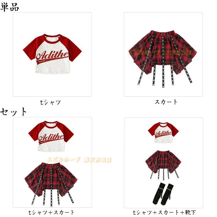 チェックスカート 総柄 レッド ショー キッズ スーツ カジュアルセットアップ カジュアルスカートセット 新作 tシャツ スカート tシャツ+スカート tシャツ+スカート+靴下 110cm 120cm 130cm 140cm 150cm 160cm 170cm 180cm