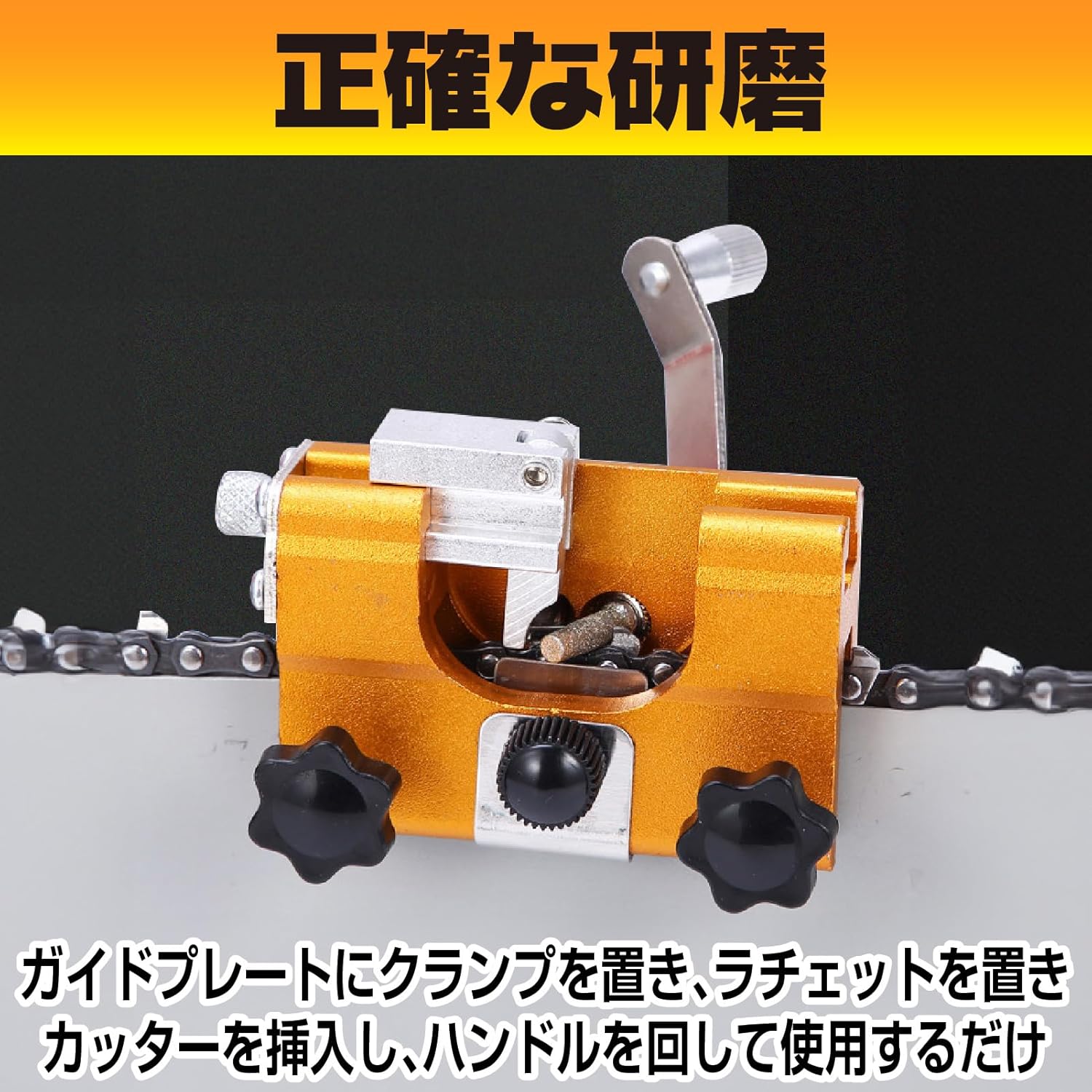 【効率的かつ正確な研磨】: ガイドプレートにクランプを設置し、カッターを挿入してハンドルを回すだけで、わずか15-20秒でチェーンが洗浄されます。この軽量で使いやすいツールは、手を怪我から守りながら、効果的な研磨を提供します。