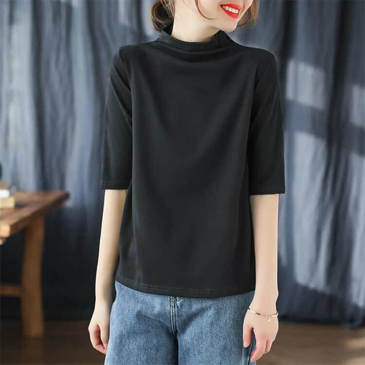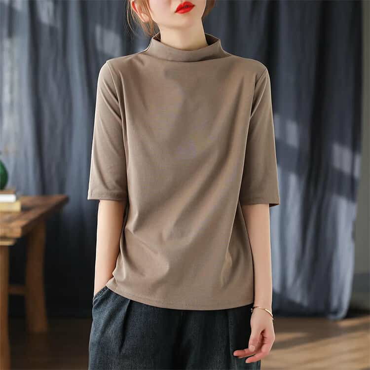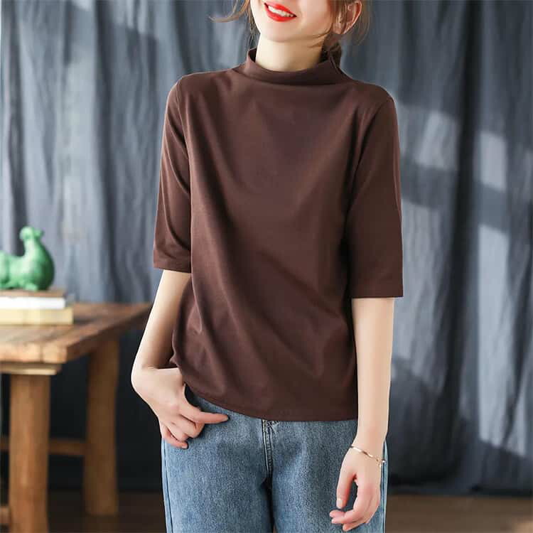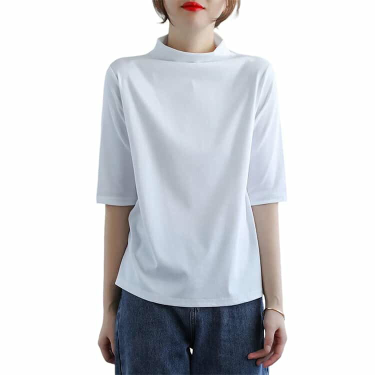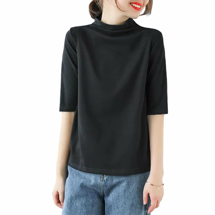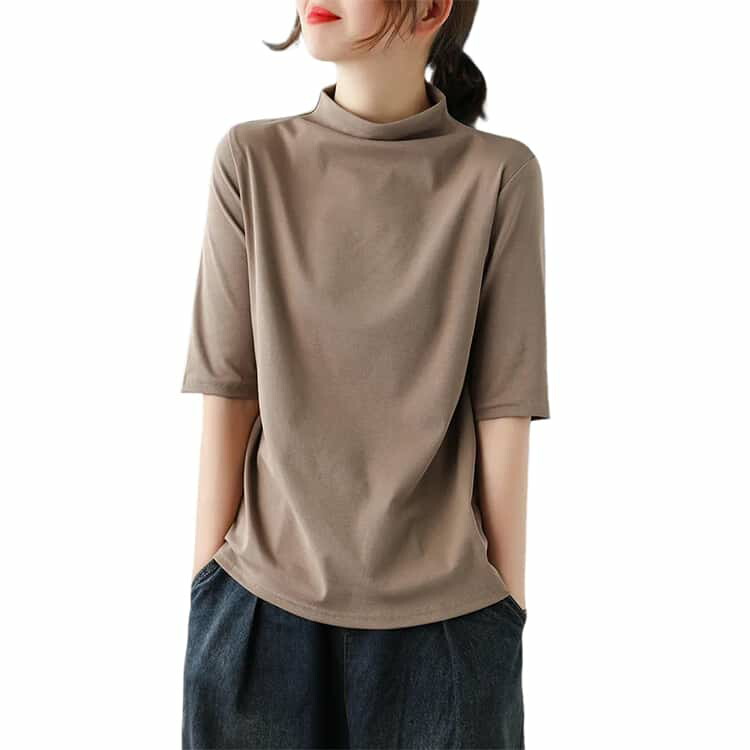 全10色 ハイネック Tシャツ 着瘦せ トップス Tシャツ カットソー 特集 コーヒー ブラウン ブラック ホワイト S(35-42kg) M(42-50kg) L(50-57kg) XL(57-65kg) 2XL(65-72kg) 3XL(72-80kg) 4XL(80-87kg) 5XL(87-95kg)
