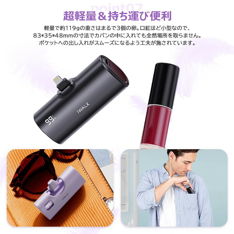 モバイルバッテリー iWALK 新発売 軽量 小型 iphone ワイヤレス 充電 急速 全機種対応 イヤホン Lightning type-c android アンドロイド iPhone15 大容量