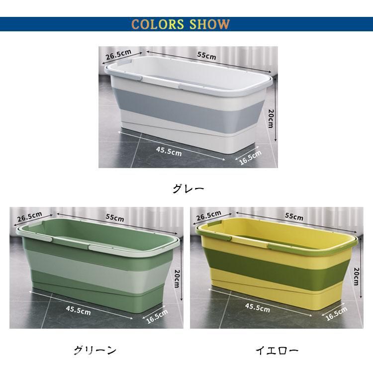 折りたたみ洗いバケツ 22L 大容量 バス用品 洗面器 風呂桶 続々入荷中 グレー グリーン イエロー