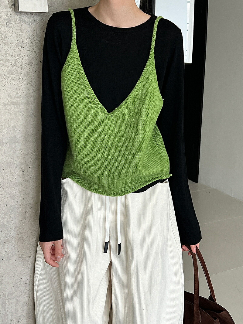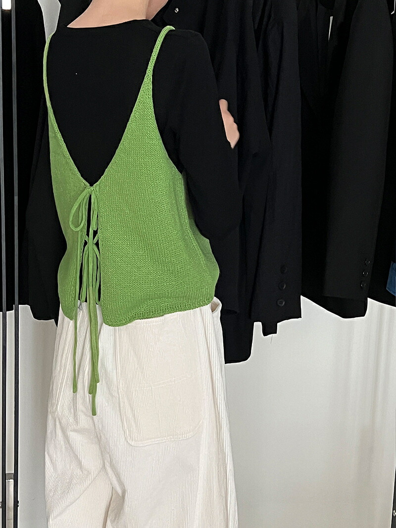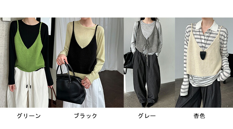 ニットベスト ビスチェ ベスト レディ レディースファッション 人気 グリーン ブラック グレー 杏色