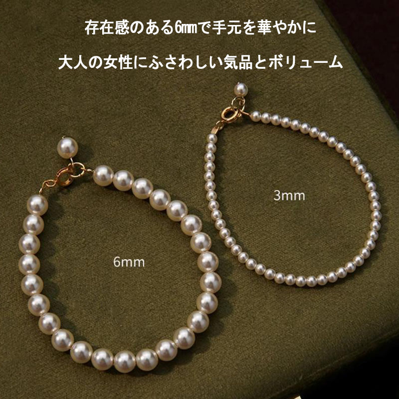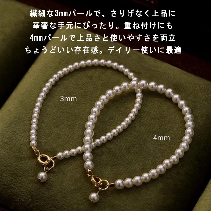 極細パールブレスレット レディース 小 ジュエリー アクセサリー 豊富な品揃え 3mm 4mm 6mm
