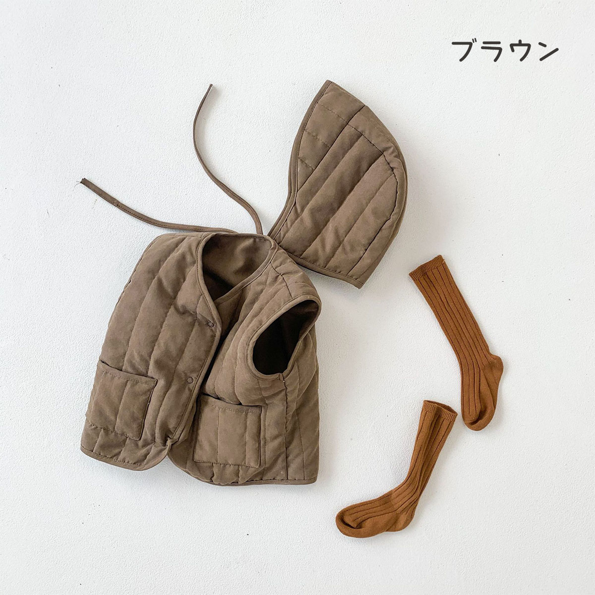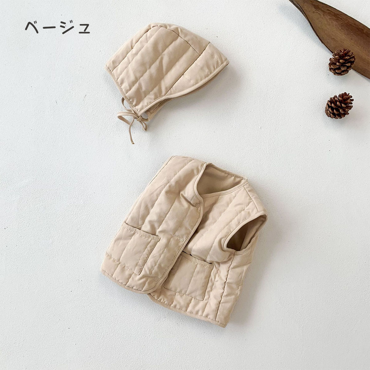 ベビー ベスト 帽子付き あったか 秋 ベビー ベビー服 ファッション トップス ベスト 胴着 新登場! ベージュ ブラウン 66cm 73cm 80cm 90cm 100cm