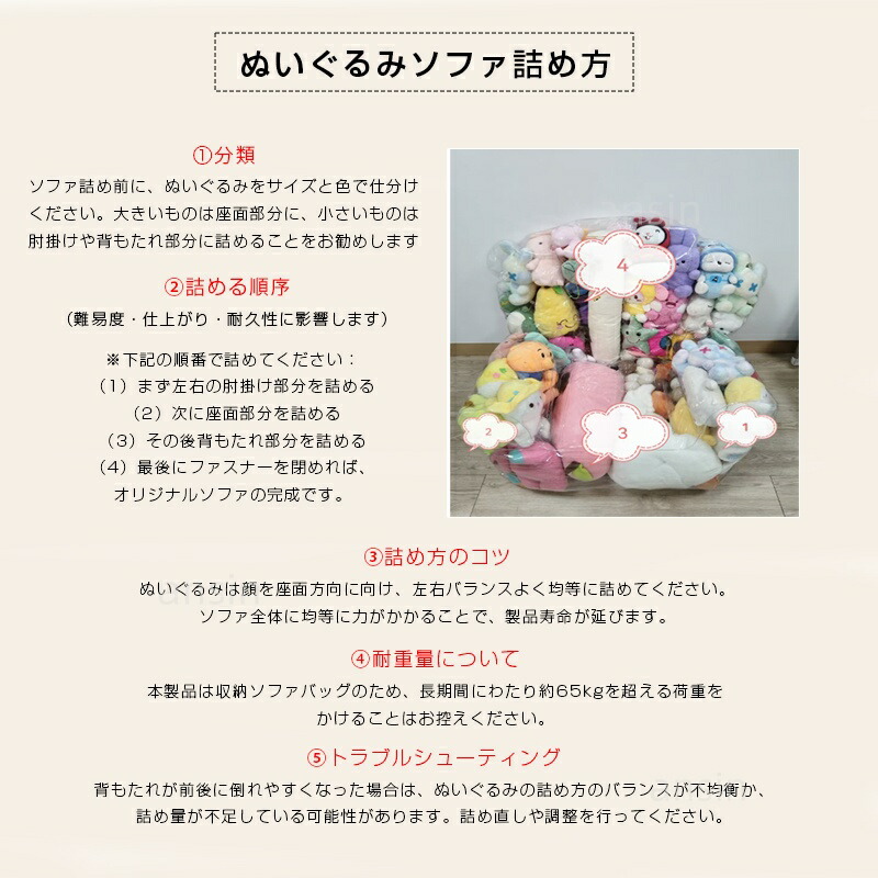 ぬいぐるみ収納 ビーンバッグ ソファー S:45*35*30CM(アーム付き) M:80*76*65CM(アーム付き) L:100*95*90CM(アーム付き) L型:60*45CM 円型:55*55*30CM 楕円形-S:75*70*60CM 楕円形-L:95*90*50CM