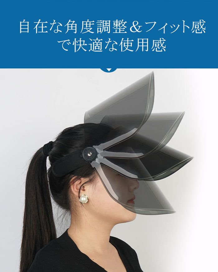 【薄めのシールドで視界良好&晴雨両用】晴天はもちろん、雨や風、冷たい日にも優しく対応できるよう、つばの角度が自在に調節可能できる日焼け防止サンバイザー!これにより、直射日光だけでなく虫や冷風からもお顔を守ってくれます。雨バイザーとしてはもちろん、冬の紫外線対策や軽い防寒対策としても活躍するので、自転車に乗る時やお散歩、アウトドアシーンなど、一年中安心してご利用いただける実用的なuvサンバイザーです。