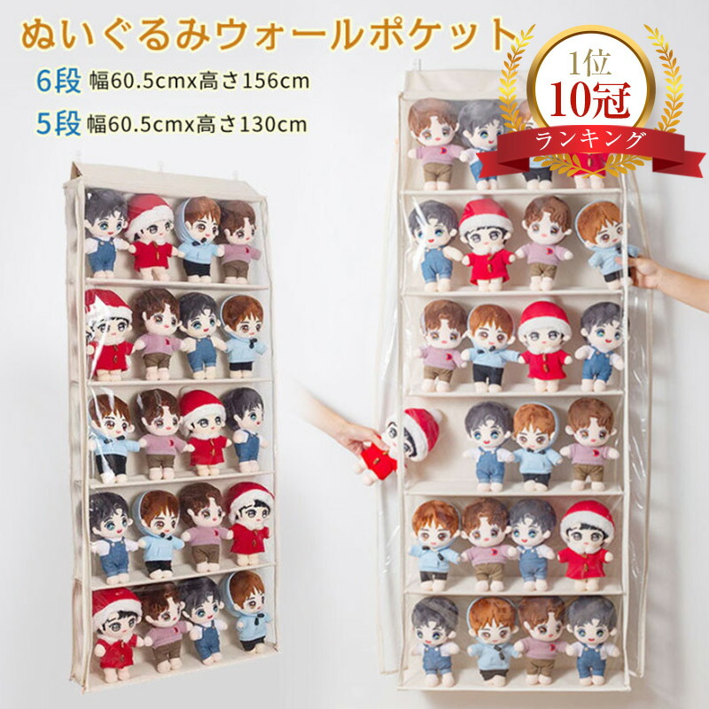 ぬいぐるみウォールポケット ぬいぐるみ 5段 6段 10段ベージュ 10段グレー