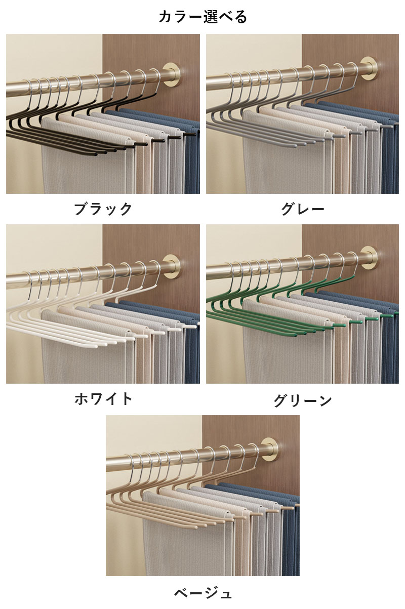 ズボンハンガー 省スペース おしゃれ ホワイト ブラック グレー グリーン ベージュ 10本 20本 30本 40本 50本