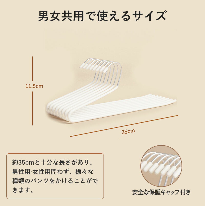 長さも約35cmと十分な長さがあり、男性用・女性用問わず、様々な種類のパンツをかけることができます。