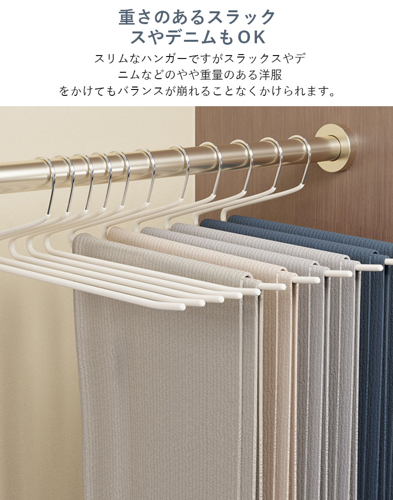 デニムやスラックスなど、スペースを取ることなくスッキリと収納できるハンガーです。
