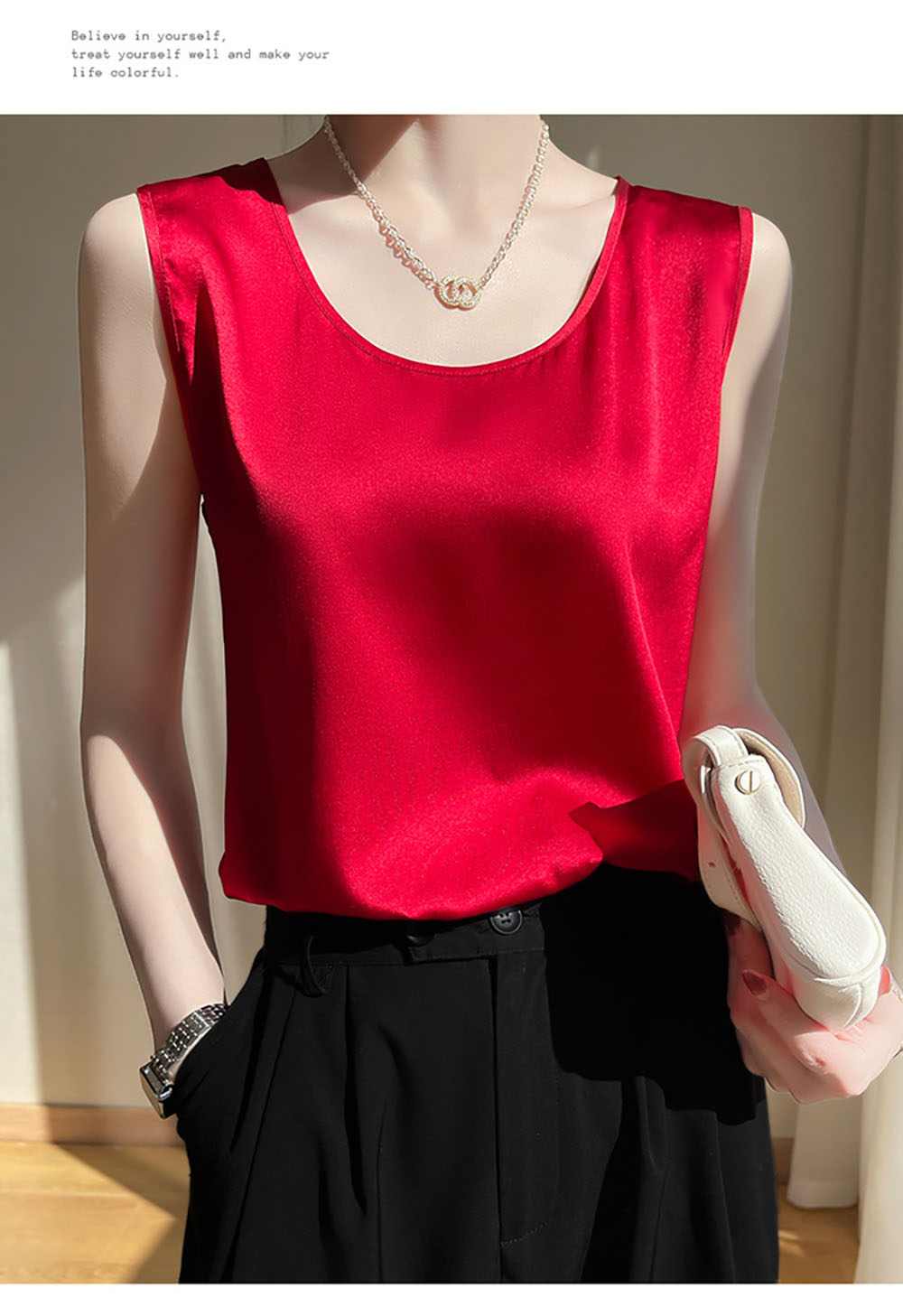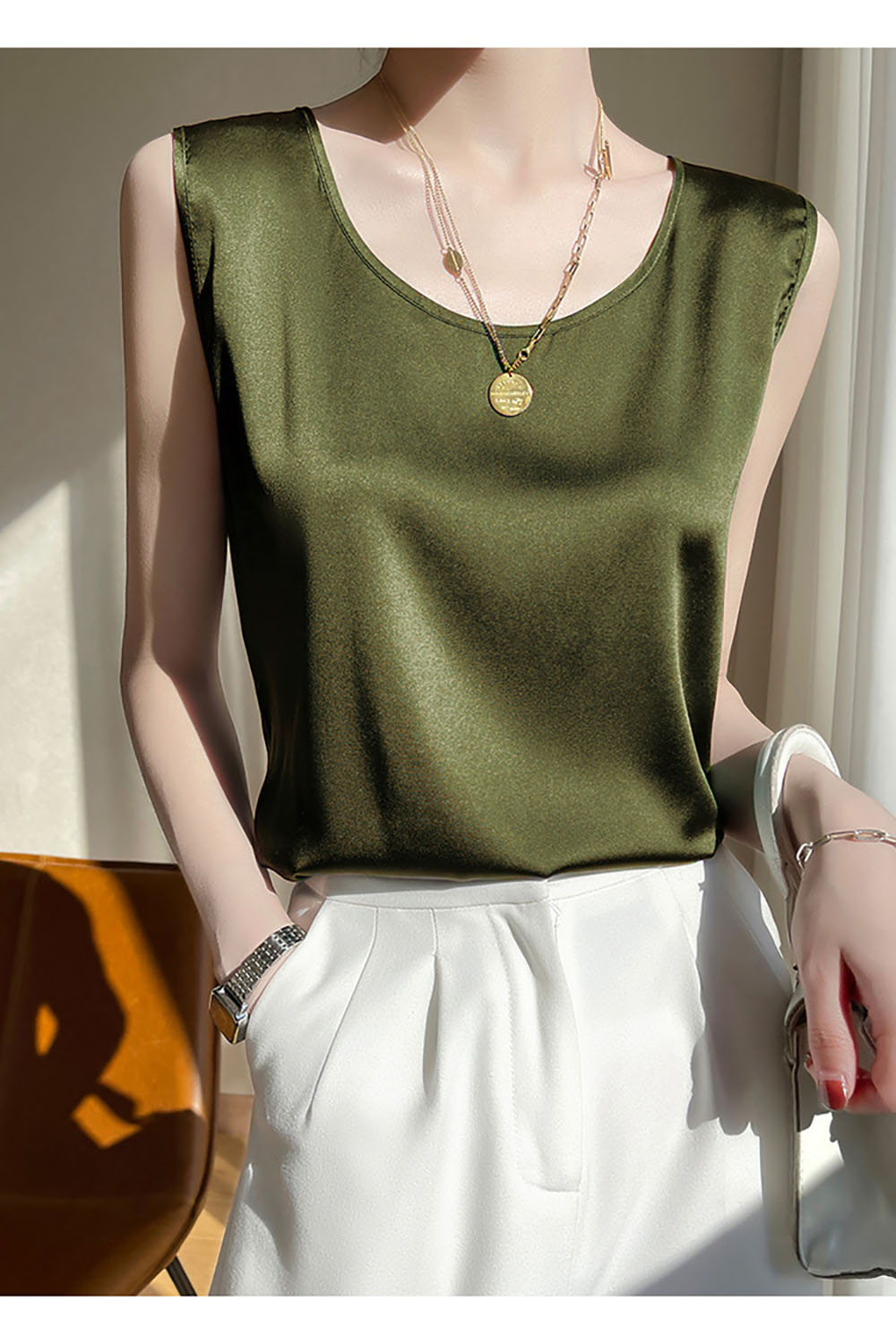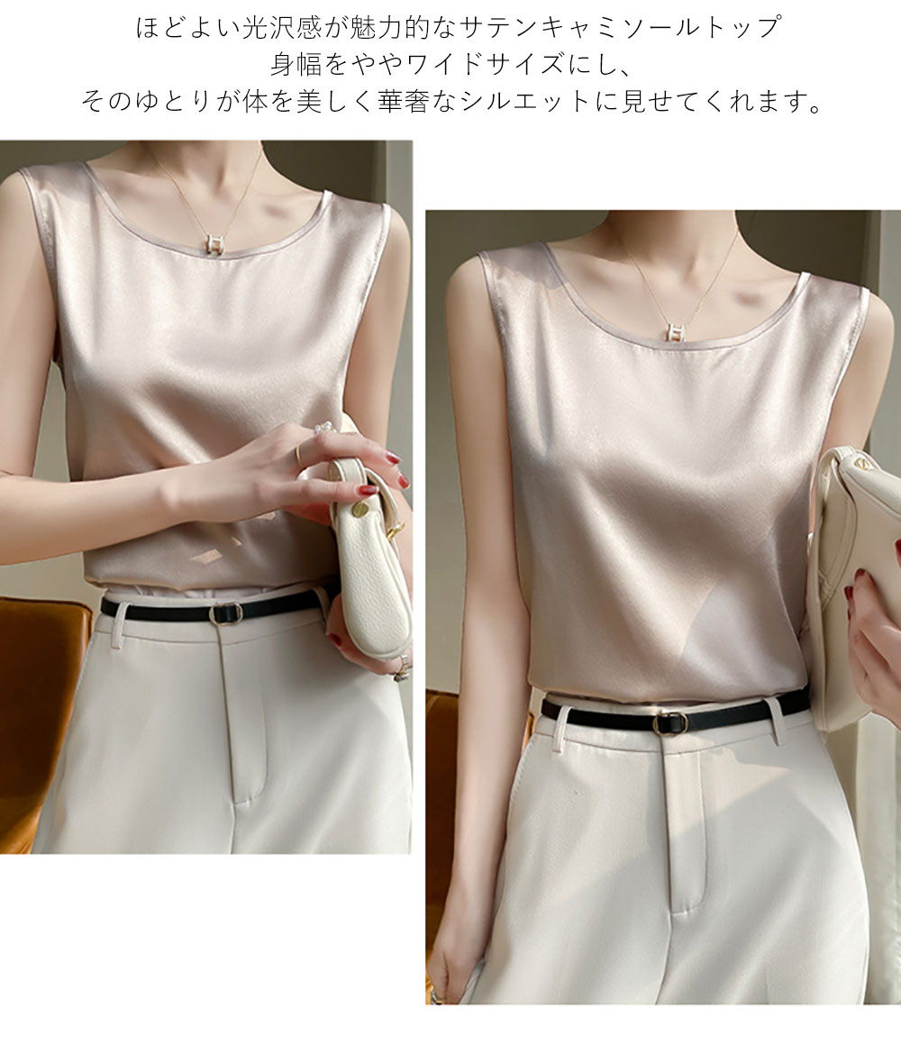 涼しい サテンタンクトップ キャミソー レディースファッション 豊富 ブラック あんずいろ オリーブ ダークブルー ライトブルー レッド S M L XL XXL XXXL