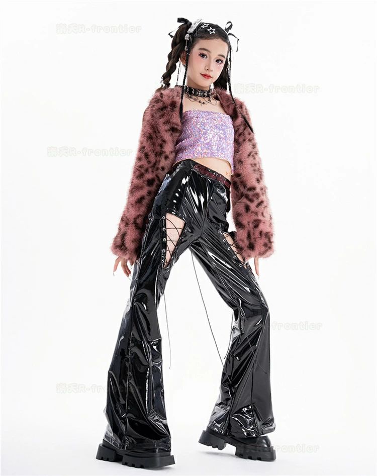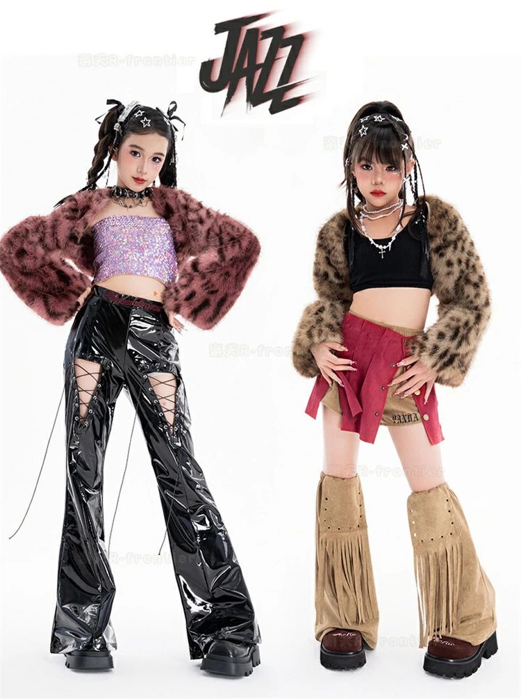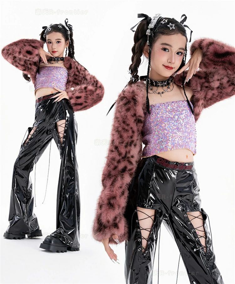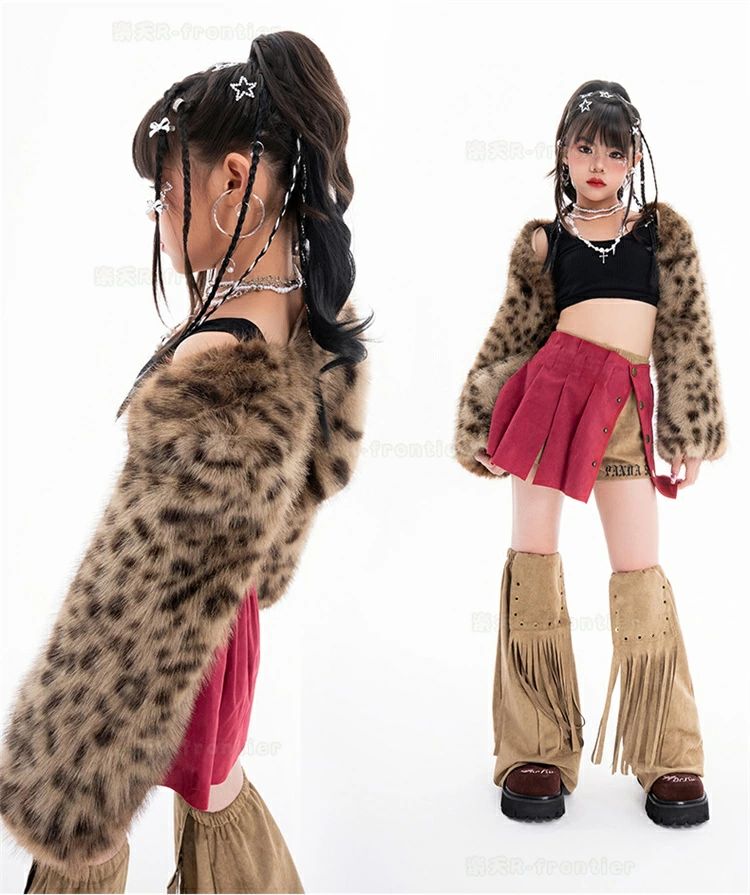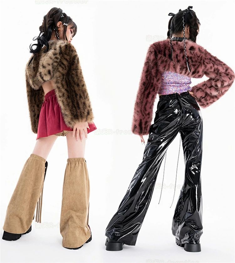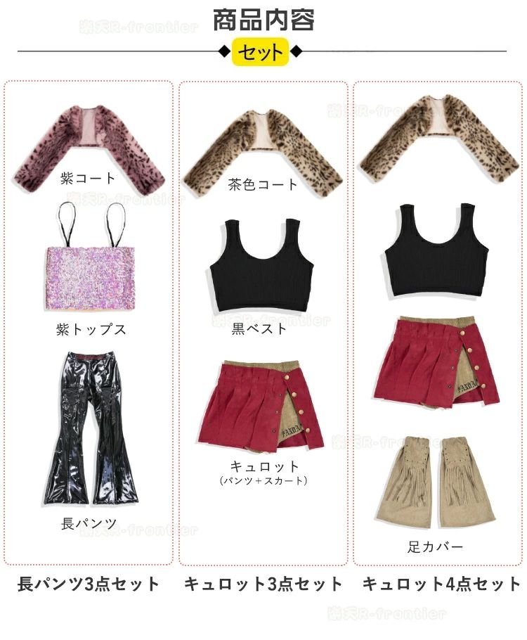 ヒョウ柄 ジャケット もこもこ スパコ スポーツ アウトドア 人気 キュロット 長パンツ 足カバー 黒ベスト 紫トップス 紫コート 茶色コート 長パンツ3点セット キュロット3点セット キュロット4点セット 120 130 140 150 160 170
