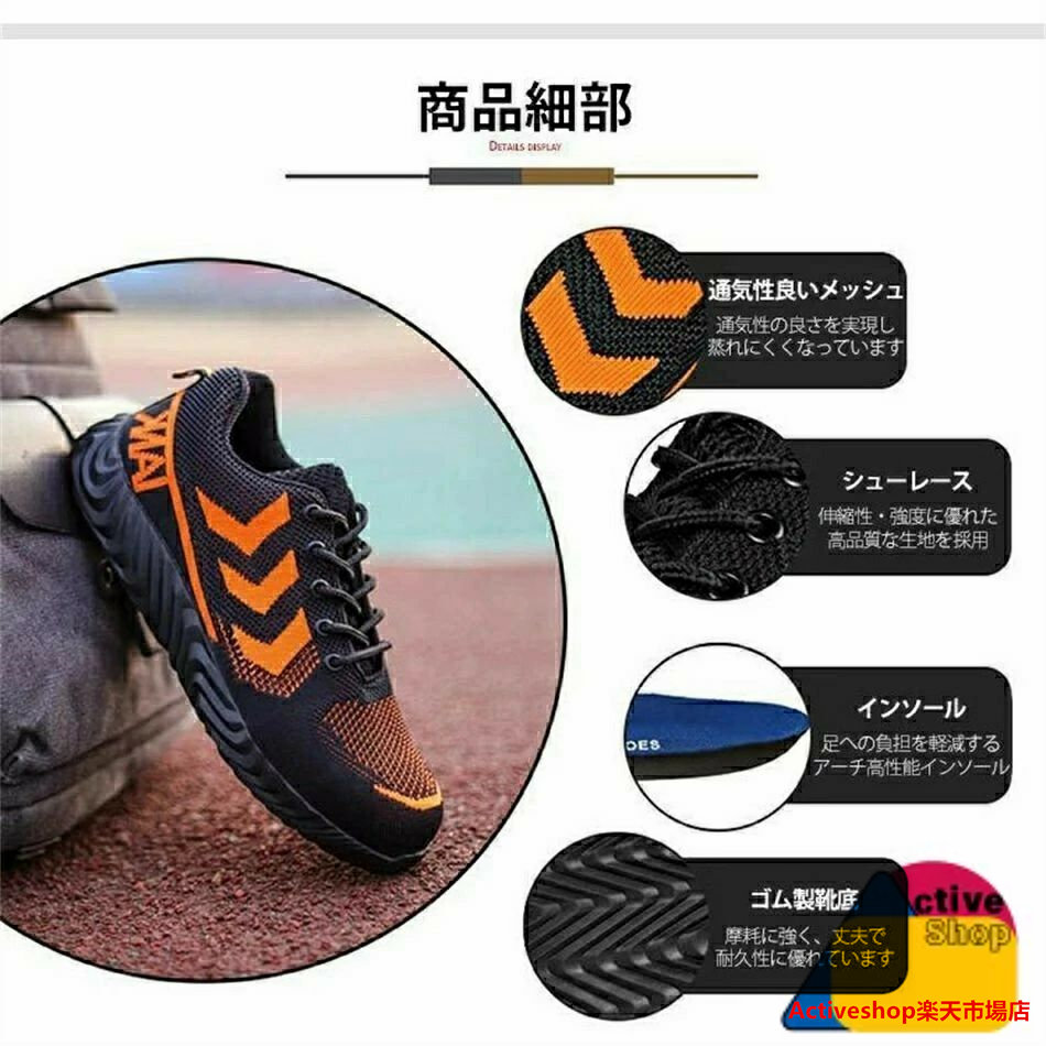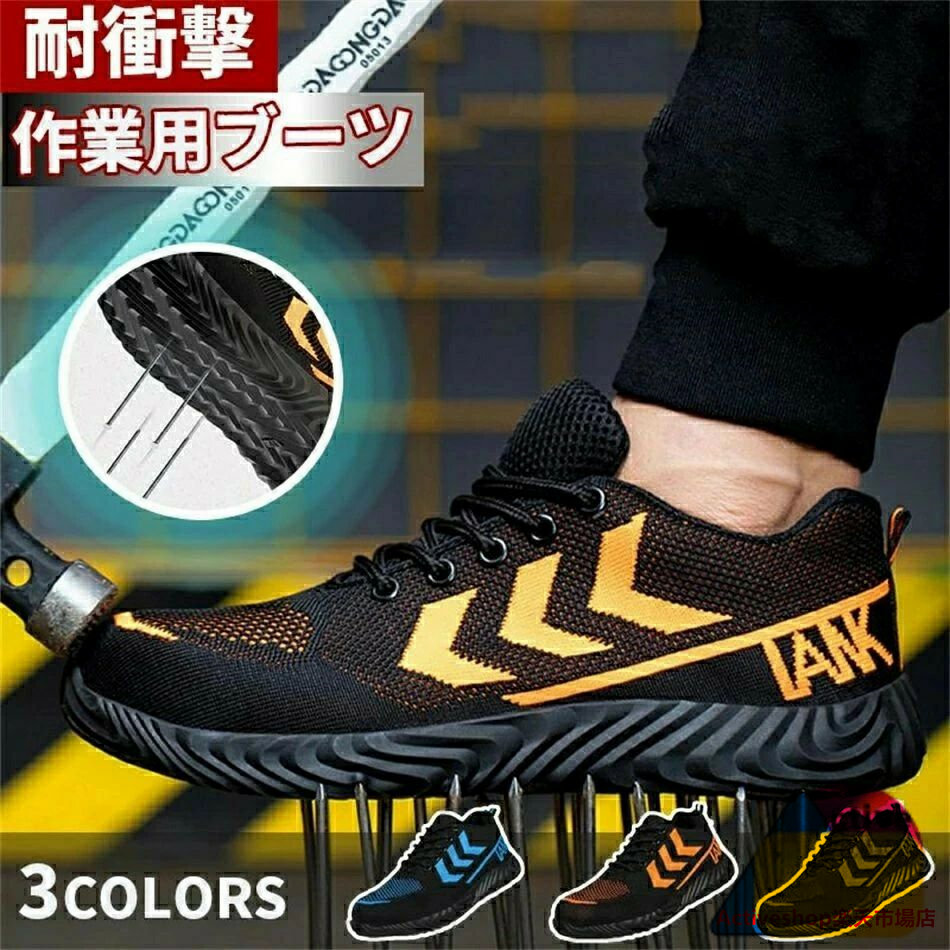 安全靴 ワークブーツ 作業靴 滑らない ブラック オレンジ ブルー 36(長さ23cm) 37(長さ23.5cm) 38(長さ24cm) 39(長さ24.5cm) 40(長さ25cm) 41(長さ25.5cm) 42(長さ26cm)