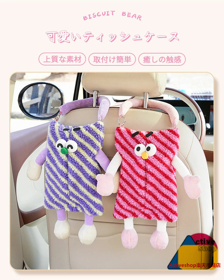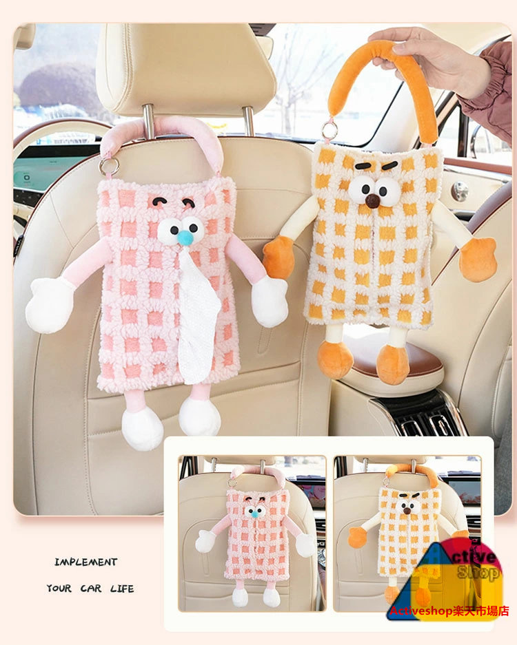 車 ティッシュケース モンスター 吊り typeA-ピンク typeB-オレンジ typeC-ブルー typeD-パープル typeE-レッド typeF-イエロー
