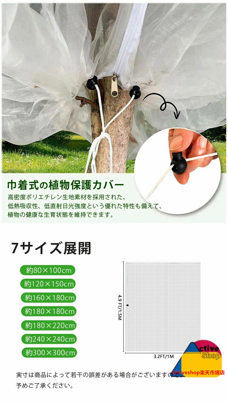 防虫ネット ファスナー付き 巾着式 植 80×100cm 120×150cm 160×180cm 180×180cm 180×220cm 240×240cm 300×300cm