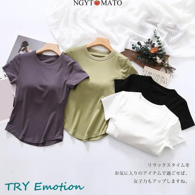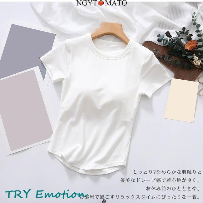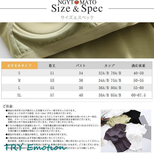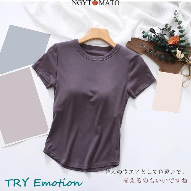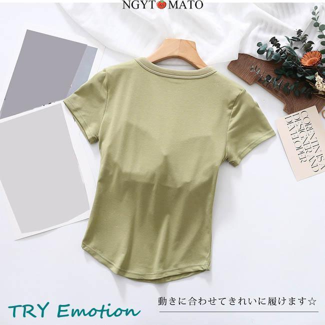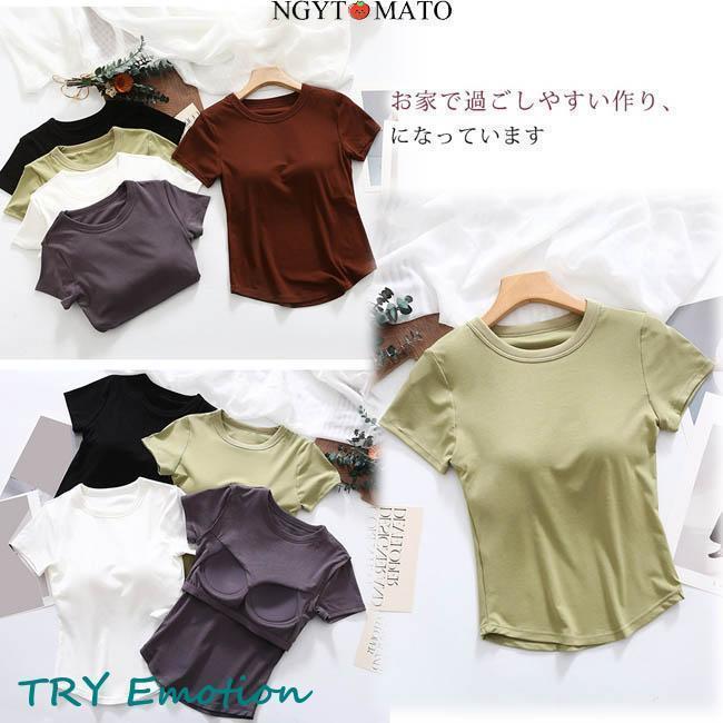 tシャツ レディース カップ付き 半袖 インナー 下着 ナイトウエア 人気 グリーン ブラック キャメル グレー ホワイト S M L XL