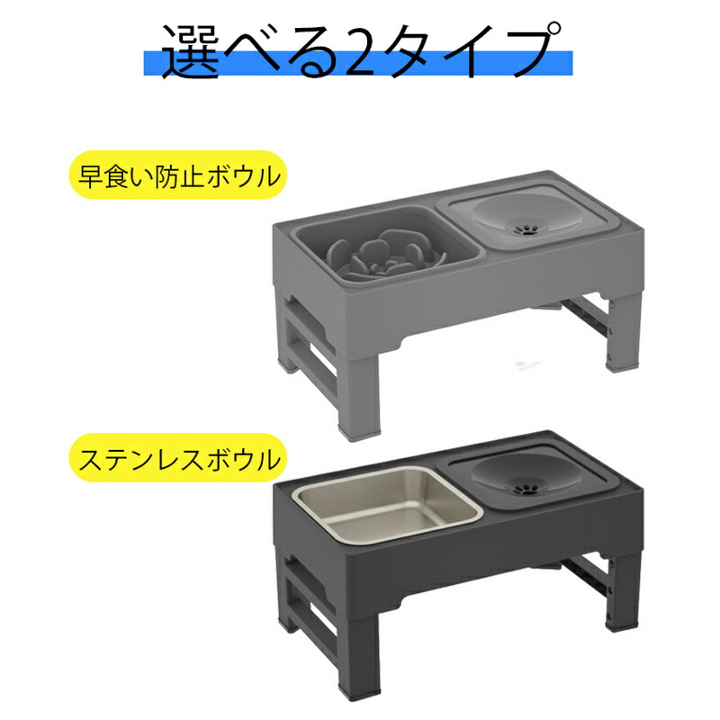 ペット食器台 犬用 猫用 早食い防止 ブラック グレー 早食い防止ボウル ステンレスボウル