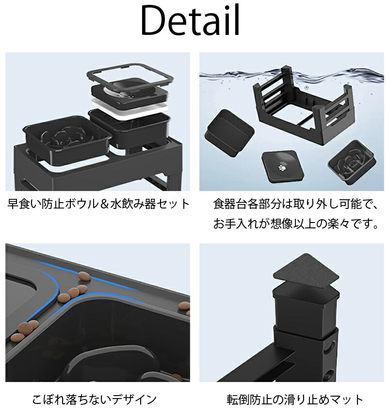 【分解可能&お手入れ簡単】犬餌台は工具を必要とせずほどの組み立てが簡単で、使用しないときは分解して収納でき、ご自宅にすっきりとしたスペースを確保できます。餌台に平滑表面処理しておりますので、日常手入れも驚くほどやすいです。折りたたみ式の食器スタンドで、外出の持ち運びは意外の簡単便利!さらに、ウォーターボウルと早食い防止ボウルが取り外し可能で、手洗いまたは食器洗い機で簡単にきれいになれます。