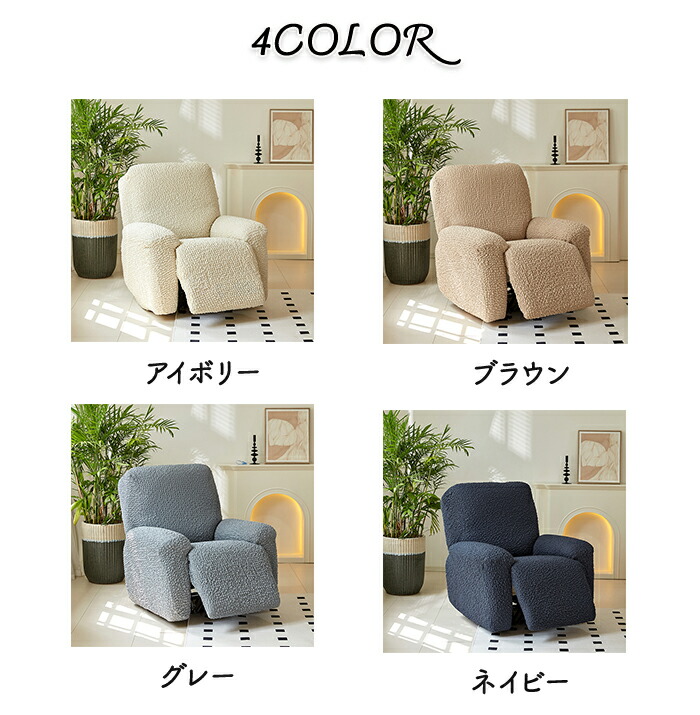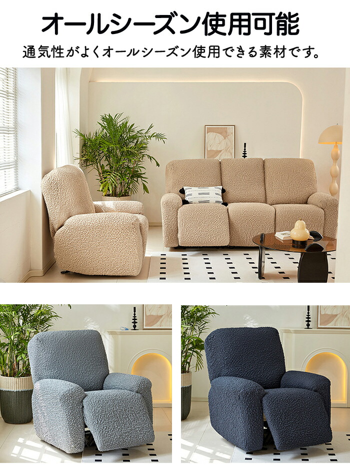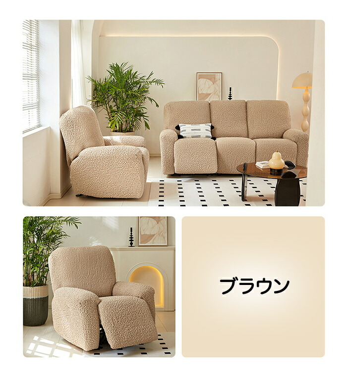 リクライニングソファ カバー リクライ ブラウン アイボリー グレー ネイビー 1人掛け 2人掛け 3人掛け
