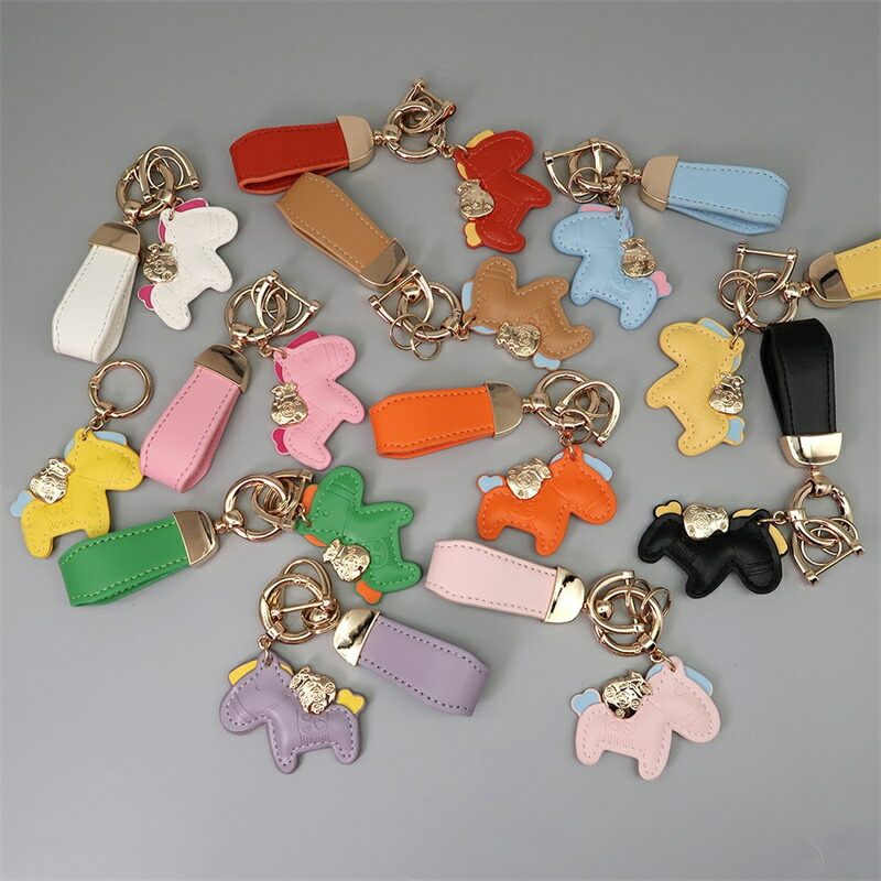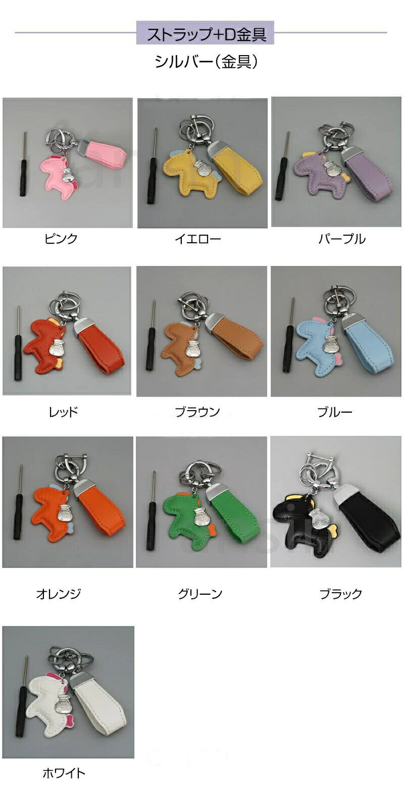馬と蹄鉄のキーホルダー 縁起の良い馬と バッグ 小物 ブランド雑貨 特集 ピンク ブルー ブラウン レッド グリーン オレンジ イエロー パープル ブラック ホワイト 単品(ゴールド) 単品(シルバー) ストラップ+D金具(ゴールド) ストラップ+D金具(シルバー) 牛革編み紐