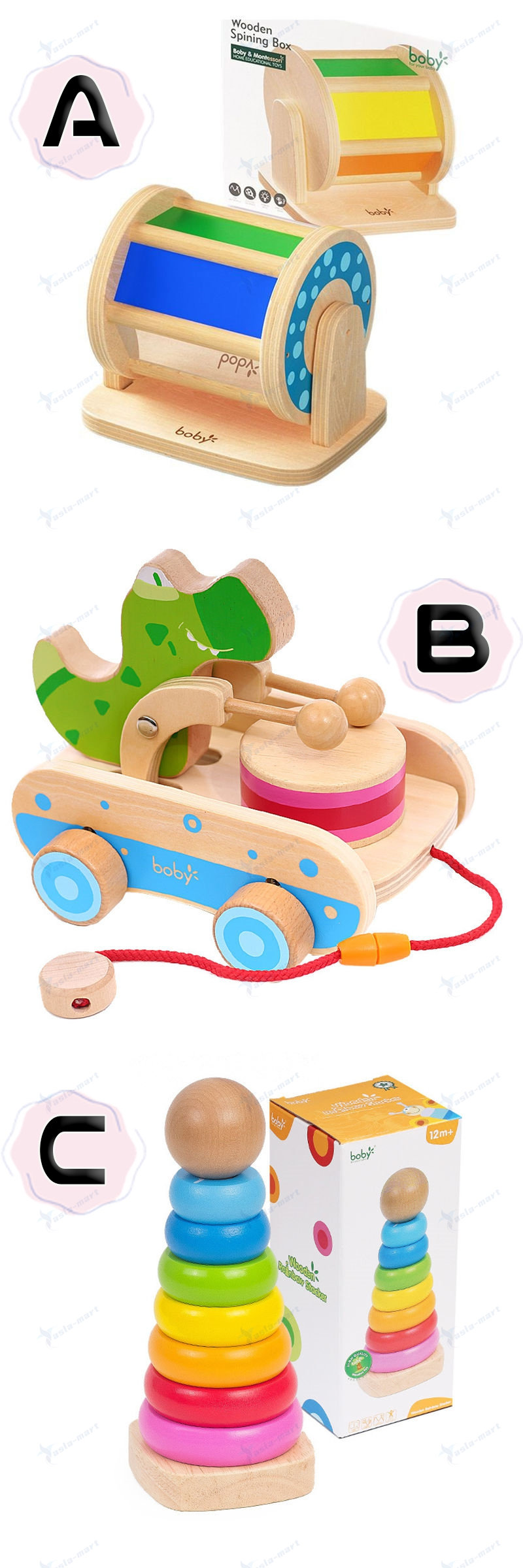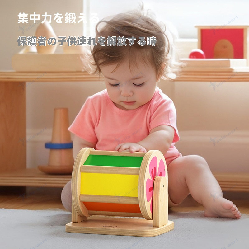 回転式視覚刺激ドラム知育玩具 教育 木 A B C